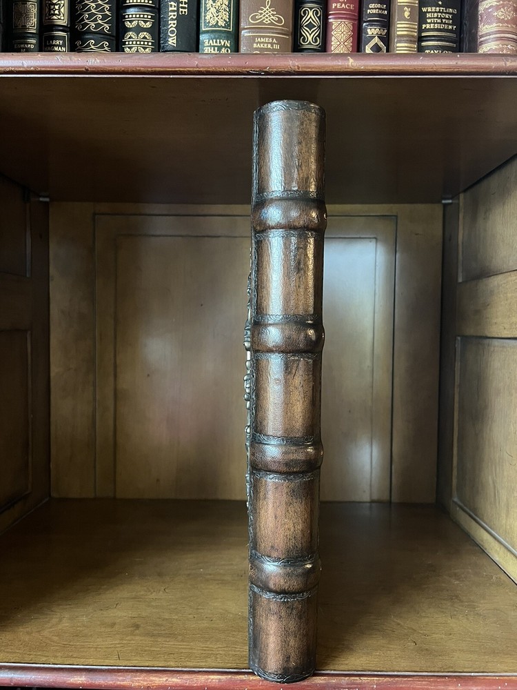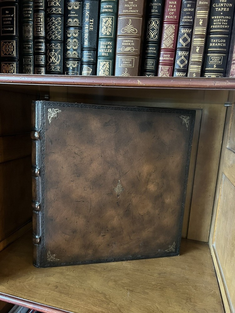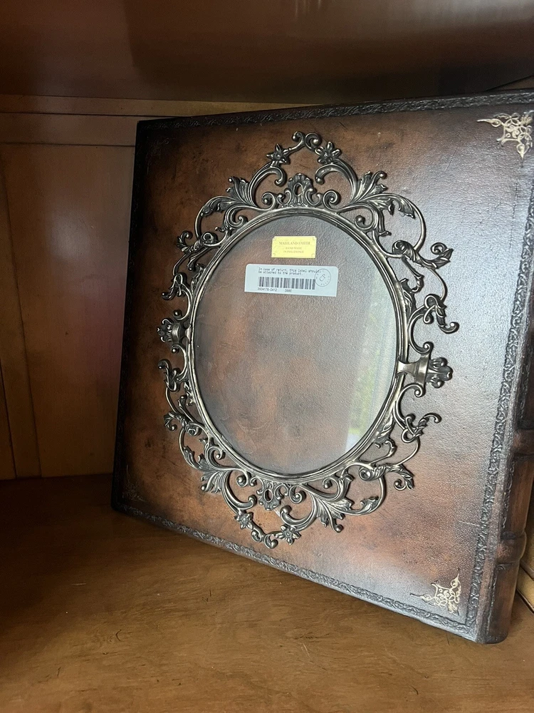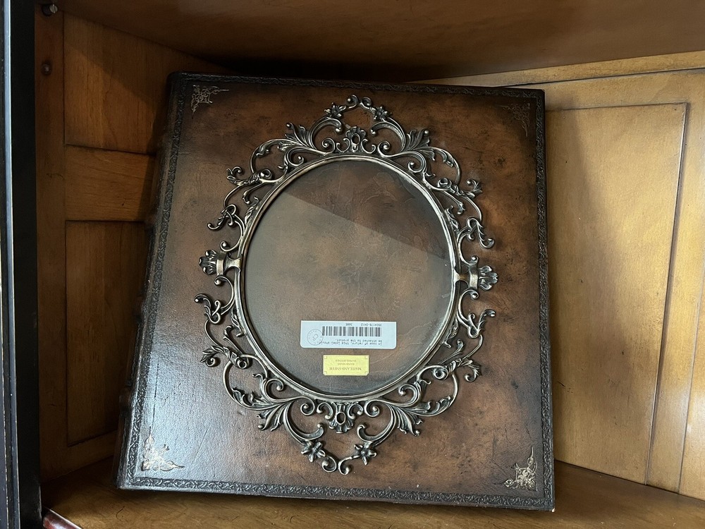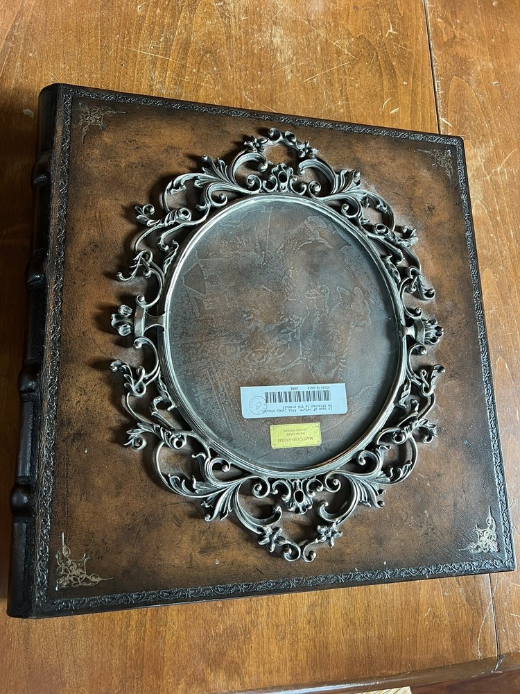 Bring your precious memories to life with this exquisite Maitland Smith French Wedding Photo Album. The rich, brown leather cover is embossed with a beautiful antique-style design, adding a touch of elegance to your collection. The book-bound format ensures that your photos stay secure and protected for years to come. This self-adhesive album can hold up to 8x10in. photos and is perfect for weddings and other special occasions. The album is brand new, never used, and ready for you to fill with your favorite memories. Don't let time slip away, keep your memories safe and beautifully displayed with this stunning embossed leather Maitland Smith photo album.