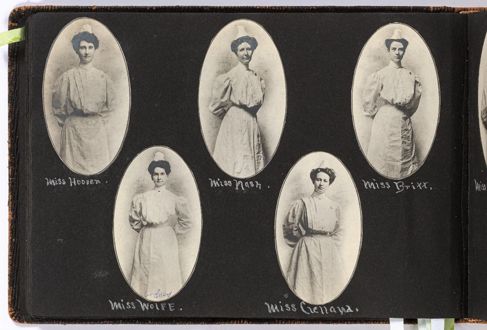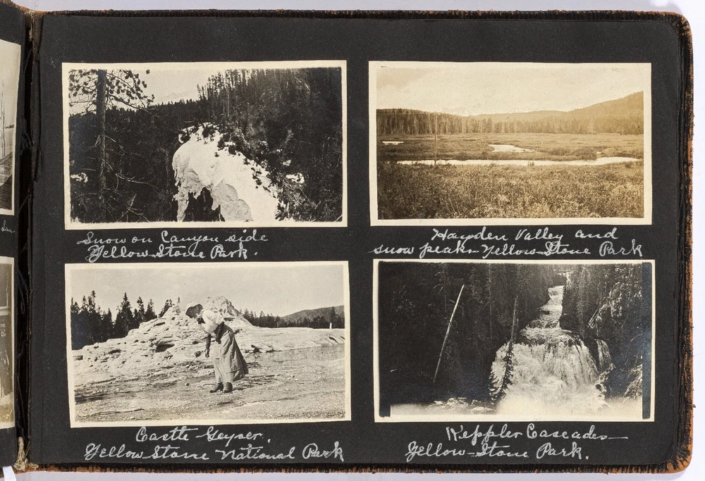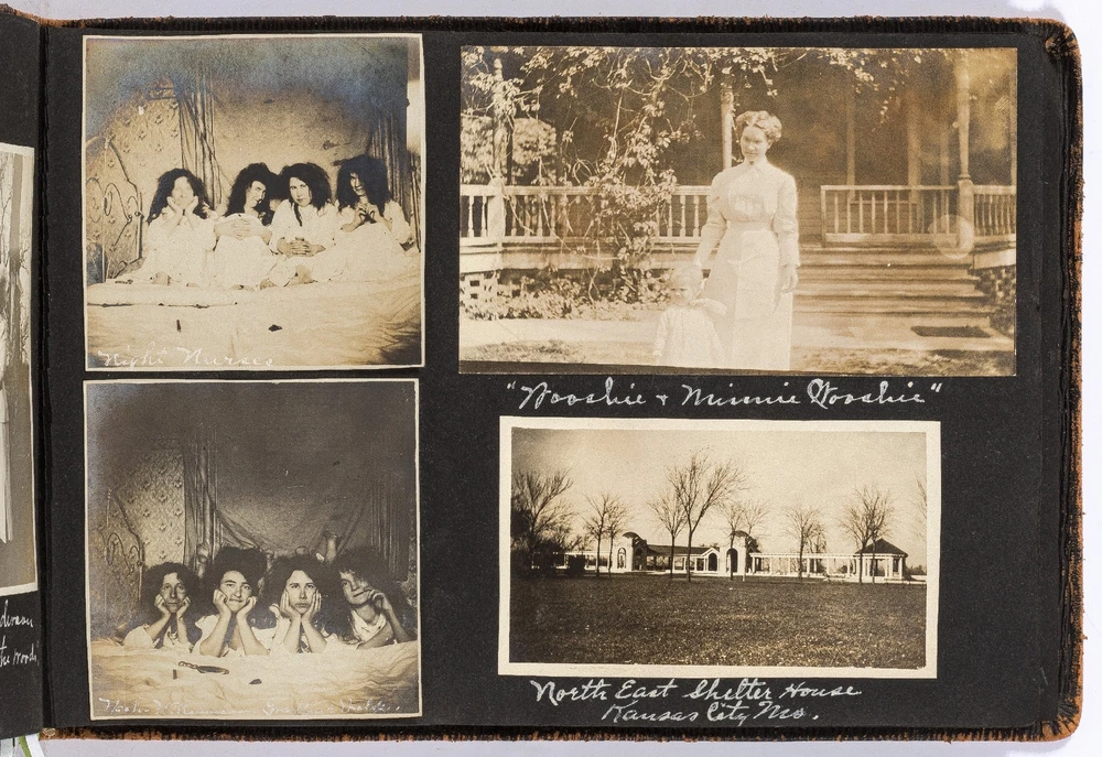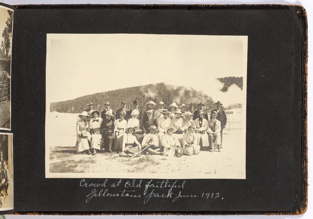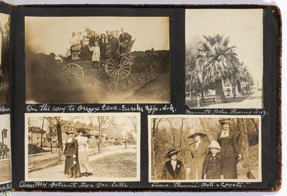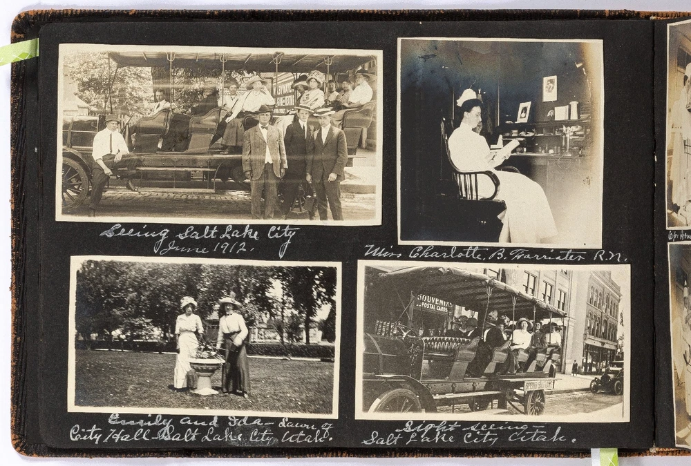 [Photo Album]: Nurse's Travel Album to Western Parts of the United States Author: WOLFE, Mary Title: [Photo Album]: Nurse's Travel Album to Western Parts of the United States Publication: California, Washington, Utah, Kansas, Arizona, Maryland, and Arkansas: 1912 Description: Softcover. Oblong octavo measuring 10.25" x 7.25". Black leather flexible boards. Contains 186 gelatin silver black and white or sepia toned photographs measuring between 3.5" x 3" and 4.5" x 4" with captions. Light wear along the extremities with boards detached from the pages but present and pages are still bound together, near fine with fine photographs. A nurse's travel album to different places in the western United States including California, Washington, Utah, Kansas, Arizona, Maryland, and Arkansas in the early 1910s. The woman, Mary Wolfe, fills the album with the various locations she and her friends traveled to including Phoenix, Arizona; Eureka, Arkansas; Baltimore, Maryland; Salt Lake City, Utah; Avalon Bay, San Pedro, and Long Beach, California; and Yellow Stone Park in Wyoming. Much of the photos are of Wolfe with her friends, posed wearing the latest styles of dress for the time period, with decorative hats and dresses that are less slimming and restrictive. Many of the California and Salt Lake City photos feature the group on the beaches enjoying the sun or fishing, in which Wolfe is seen holding a large fish, half the size of her body. In a later fishing photo, she captions the picture stating that she caught the large fish herself. Of the Yellowstone National Park photos, The Old Faithful Geyser, Keepler Cascades, Rock Lake, and Hayden Valley are pictured. Mary Wolfe was a practicing nurse and while visiting Baltimore, there are a couple photographs of John Hopkins Hospital. She also includes portrait shots of the other nurses she worked with and in one photograph, she is seen with three other nurses with upkept hair during a sleepover. Other photographs show her in an operating room with other staff around a patient on a stretcher. Charmingly, captioned under a group photograph, Wolfe writes," For beauty we are not stars; there are others more handsome by far; but our face we do not mind it. Because we are behind it." A Nurse's travel album to the Western parts of the United States in 1912. Seller ID: 444216 Between the Covers Between the Covers has been selling books for more than 30 years. Today we offer a wide ranging inventory, from Modern First Editions to General Used Books to Rare Archival Collections. We are active members of the Antiquarian Booksellers' Association of America (ABAA) and the International League of Antiquarian Booksellers (ILAB) . Terms All orders ship within two business days. Standard mail is USPS Media Mail. Expedited and international shipping are also available. We offer combined shipping on multiple orders. All books are guaranteed to be as described or they may be returned within 30 days of receipt for a full refund. This listing was created by Bibliopolis.