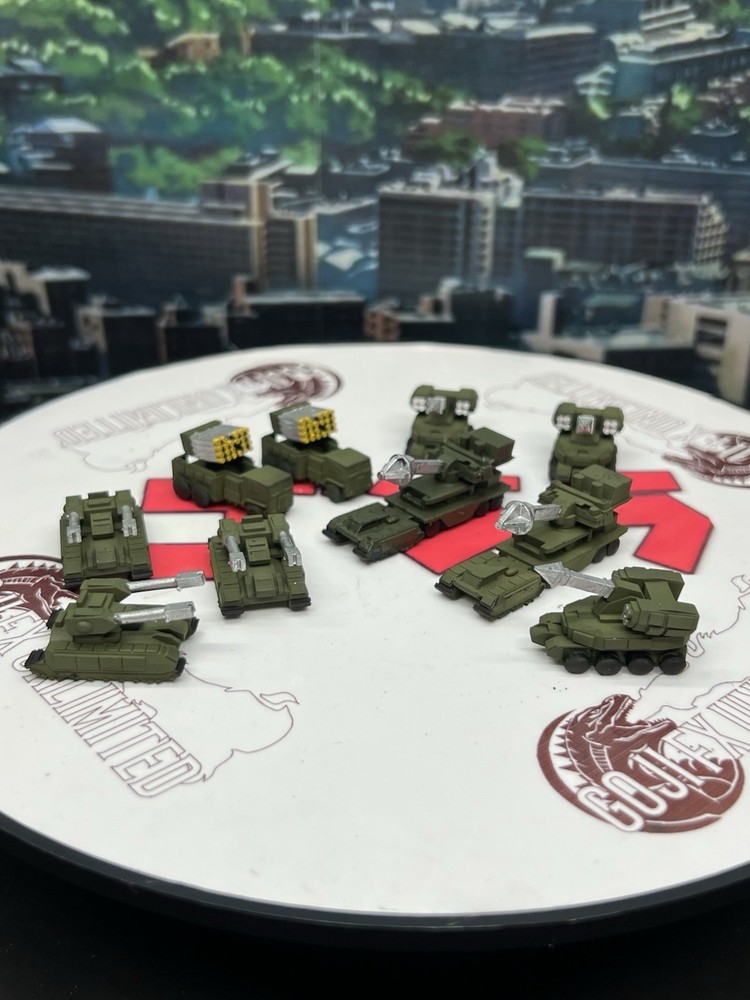 Custom made Maser tanks and Maser Cannon vehicle set. This is for the 10 vehicles only. The set includes 2 Maser Cannons, 2 Missile Trucks, and 6 Tanks (3 of each design) **IMPORTANT PLEASE READ** •This is for the effect only. •All other photos are for scale and demonstration purposes only, and may not be the exact beam in the listing. •No stands, figures, buildings, background pieces are included. •All beams will be carefully packaged, the seller is not held liable for damage or breakage caused by UPS or USPS. All claims must be taken up with the shipping company. •Returns or Cancellations will not be accepted if the buyer has failed to read the full description. •Purchasing this item confirms that the buyer has fully read the item description. Thank you for supporting my store. I am an artisan maker of Godzilla and other like theme effects, buildings, dioramas, signage, and displays. I also do commission model assembly and painting, commission miniature painting, oil paintings, figure repair, and commission printing. The main focus has been SHMA/Hiya scale, however, I do larger and smaller scale for 4” figures and all the way up to the 30cm X-Plus and Omega Beast scale Gigantic figures. Being that I am a small operation with this occupying my spare time, be aware that I have set the processing time to 10 business days. I would rather give a long estimate than apologizing for something taking longer than quoted. 90% of the orders ship well before the quoted shipping date.