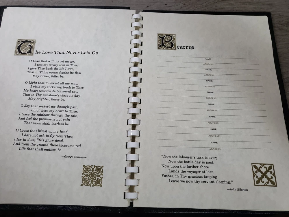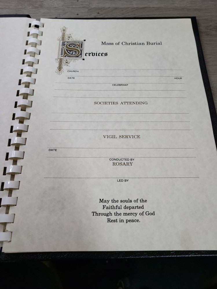 Mass Of Christian Burial Funeral Planner-Guest Book Sign In Black Leather Bound. FEEDBACK: Please leave me feedback and I will be happy to leave you one in return. In case you are not satisfied with the purchase please contact me before leaving feedback, Any problem can be resolved. Shipping: Fast and secure shipping. We strive for 100% customer satisfaction. Will combine shipping on multiple items, will refund any shipping overages