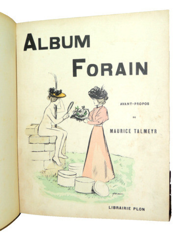 Avant-Propos de Maurice Talmeyr 54 planches de dessins par Jean-Louis Forain (1852 - 1931). Joli album humoristique de caricatures de l'époque par Louis Forain, peintre, illustrateur et graveur français. Album relié, 24x30 cm, couvertures illustrées conservées, 116pp. très bon état. Plon, 1896.