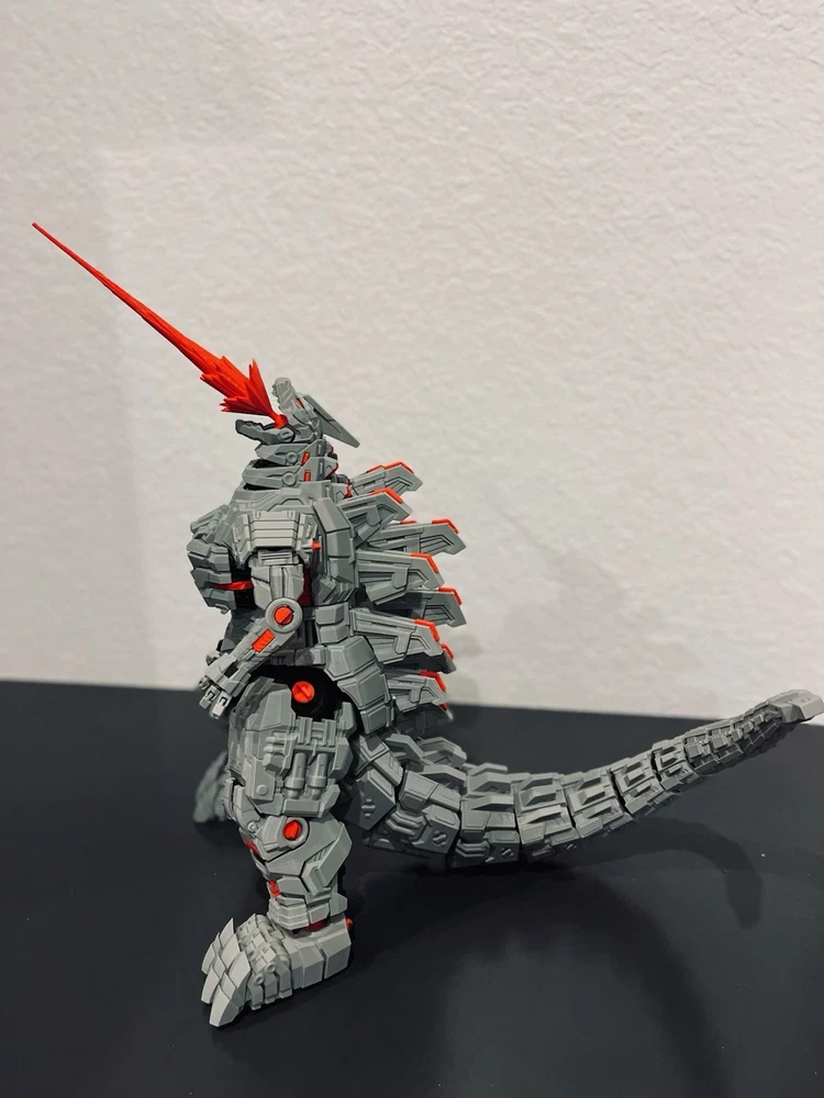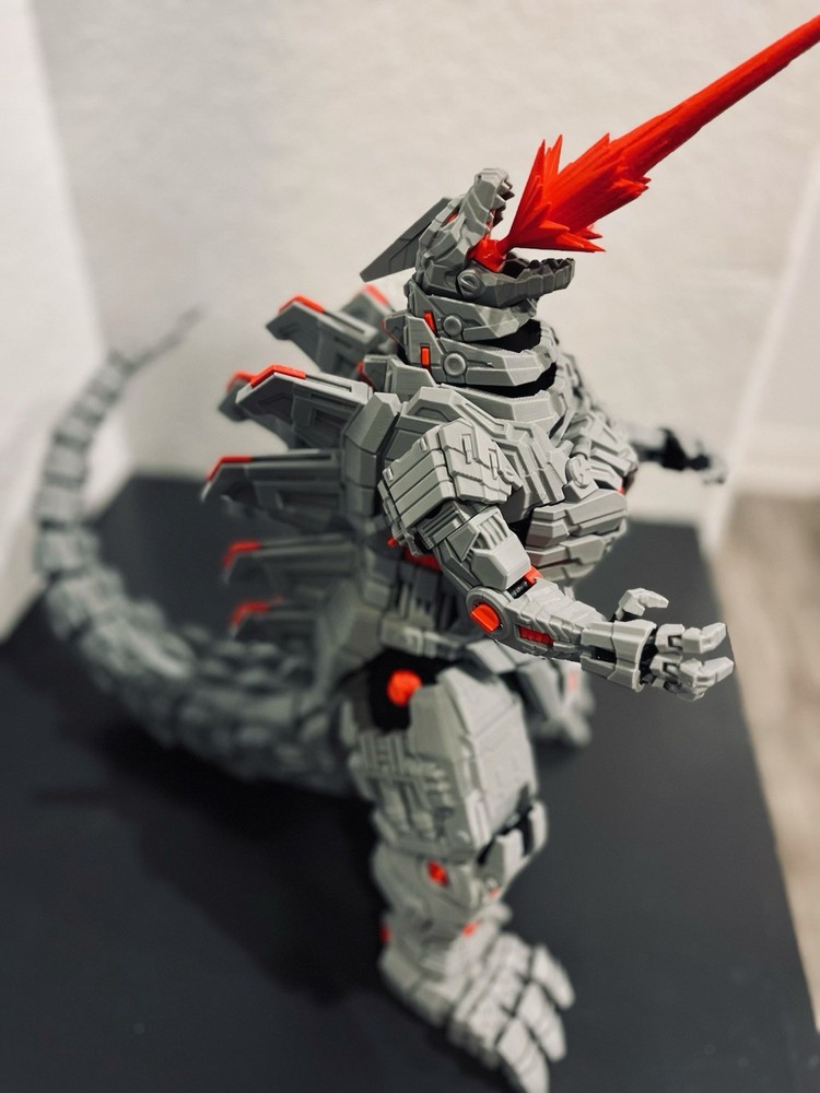 The Mecha Godzilla Action Figure is a highly detailed and collectible toy inspired by the iconic Godzilla monster. Designed for fans aged 10-50, this United States-made figure captures the essence of the legendary creature in a robotic form. With intricate features and high-quality craftsmanship, this action figure brings a piece of the Godzilla universe to life for enthusiasts aged 17 years and up. It’s 1.5 feet tall and 2 feet long. Perfect for display or play, this Mecha Godzilla figure is a must-have for any Godzilla fan. MechaGodzilla Articulated ( Made and Ship in USA) 100% scale is close to 15 inches tall This is 3D printed model. It is a DIY kit, it comes in 86 pieces. instructions of how to assemble will be send with the package itself. It also comes fully assembled with 2 heads,1 regular 1 with Fin weapon package and atomic breath blast beams. * Model is made from PLA+ in gray. * Due to the nature of 3D printing some minor imperfections may appear on the model. These can all be removed with minor post processing. * Made to order - Please allow 5-7 days for printing. * Custom colors are available on request.