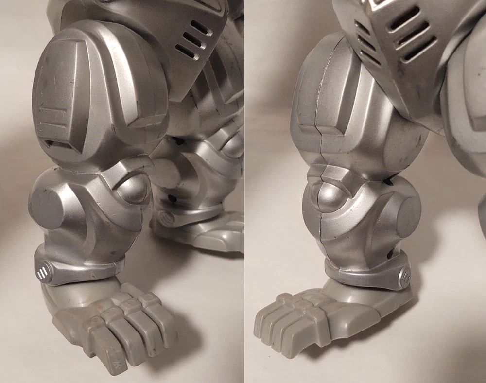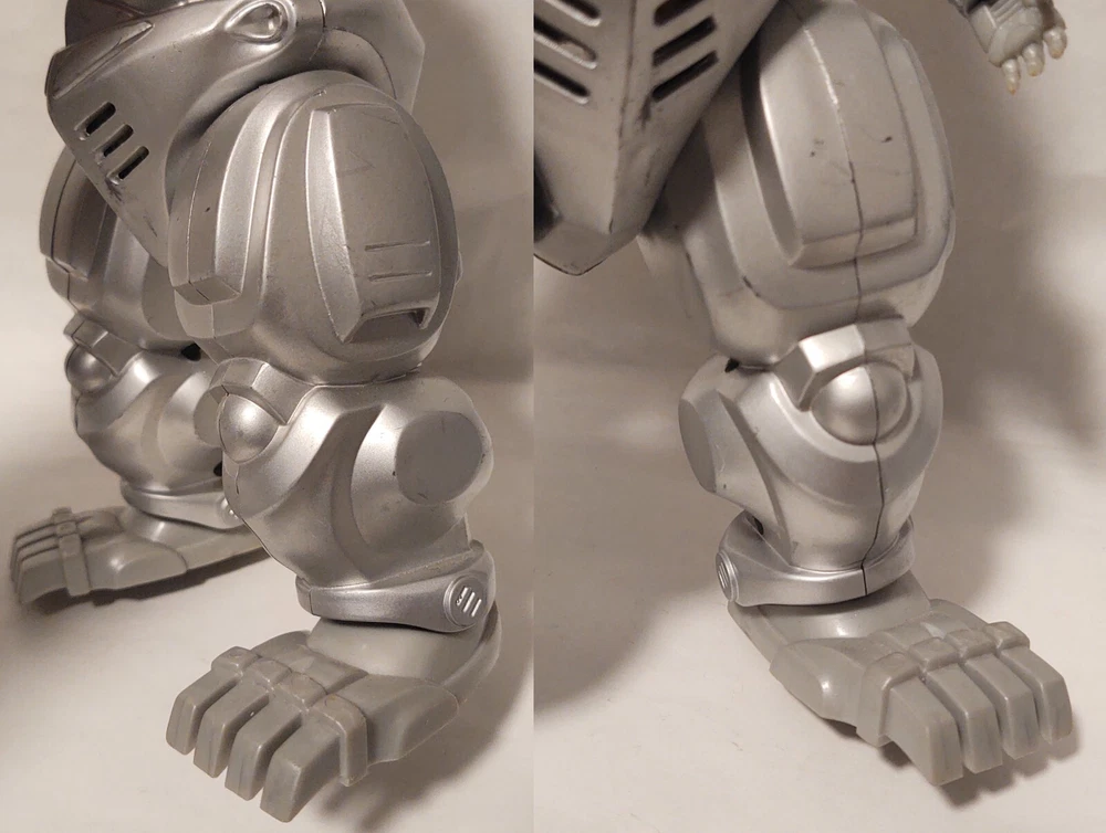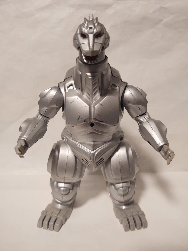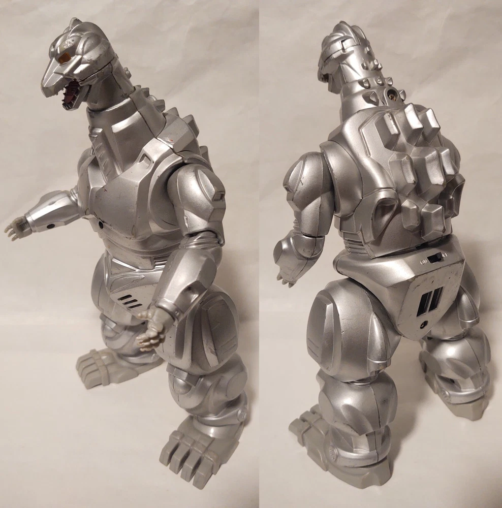 Mechagodzilla 9.5" Trendmasters Figure - No Tail - Does Not Work & 4.5" Figure Photos may not fully display all flaws Sold As Is Mechagodzilla 9.5" Figure Figure has heavy wear, scratches, scuff marks, paint loss, dust/dirt, & damage Arm joints are loose Tail is missing There is a loose magnet inside the figure Tested - does not work Mechagodzilla 4.5" Figure Figure has heavy wear, scratches, scuff marks, paint loss, dust/dirt, & damage Figure can not stand up on its own Fingers are missing Disclaimer: Listing does not come from a smoke free home. Listing items are kept in a room away from direct contact with smoke, but please be aware before purchase. Items are sold as is .