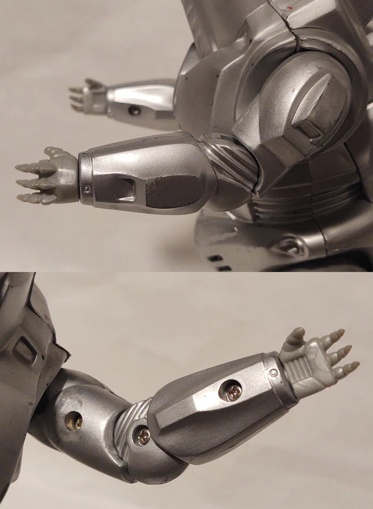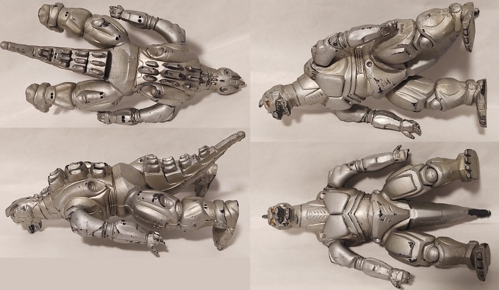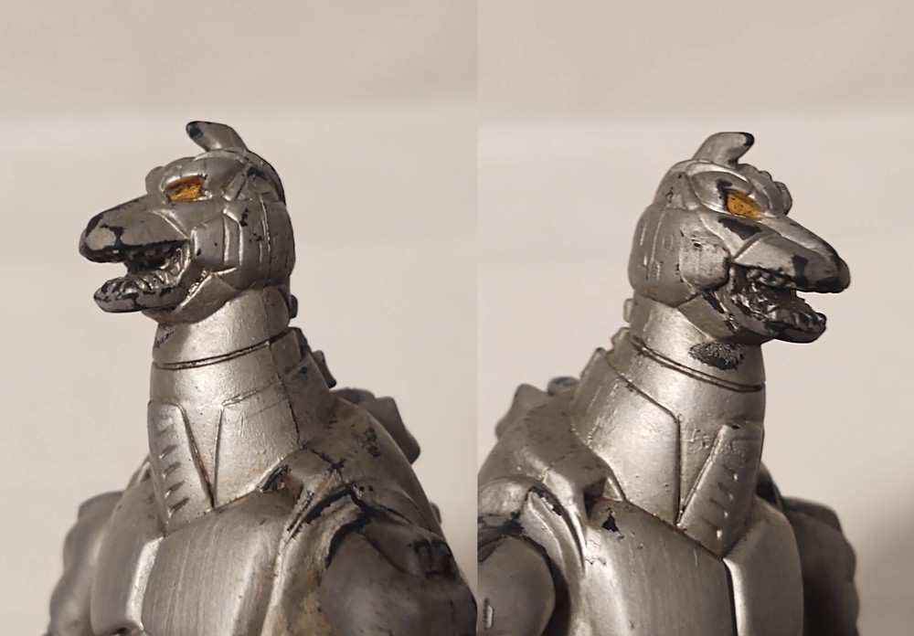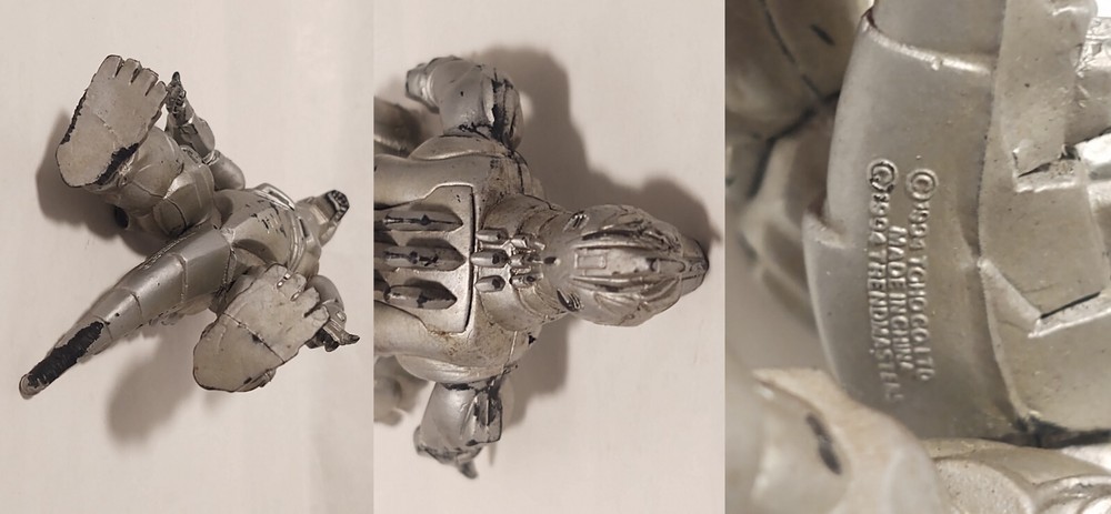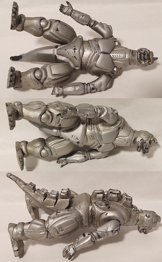 Mechagodzilla 9.5" Trendmasters Figure - No Tail - Does Not Work & 4.5" Figure Photos may not fully display all flaws Sold As Is Mechagodzilla 9.5" Figure Figure has heavy wear, scratches, scuff marks, paint loss, dust/dirt, & damage Arm joints are loose Tail is missing There is a loose magnet inside the figure Tested - does not work Mechagodzilla 4.5" Figure Figure has heavy wear, scratches, scuff marks, paint loss, dust/dirt, & damage Figure can not stand up on its own Fingers are missing Disclaimer: Listing does not come from a smoke free home. Listing items are kept in a room away from direct contact with smoke, but please be aware before purchase. Items are sold as is .