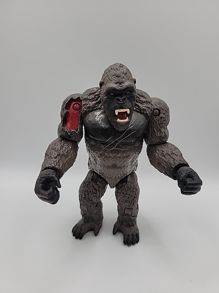 The Mechagodzilla, Godzilla, and Kong Playmates Monsterverse 7" figures are plastic and rubber action figures based on the characters from the movie "Godzilla vs. Kong." The figures are 1:12 scale and were manufactured in 2021. They are part of the Godzilla franchise and feature adjustable features. These official licensed reproduction figures are designed by Playmates Toys and stand 7 inches tall. ***Please note this is a resale item & may have some ware. Look at the photos closely. Mecha Godzillas leg joints are a little loose but will still stand up.***