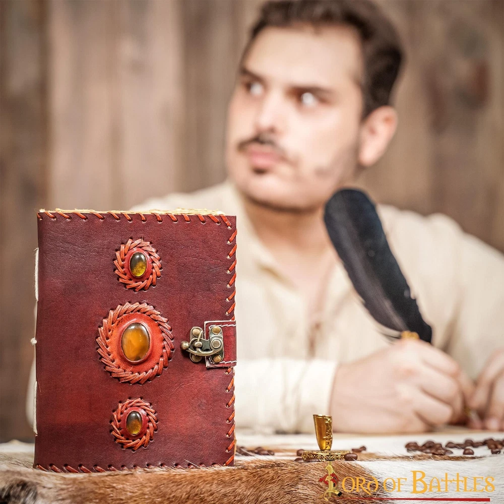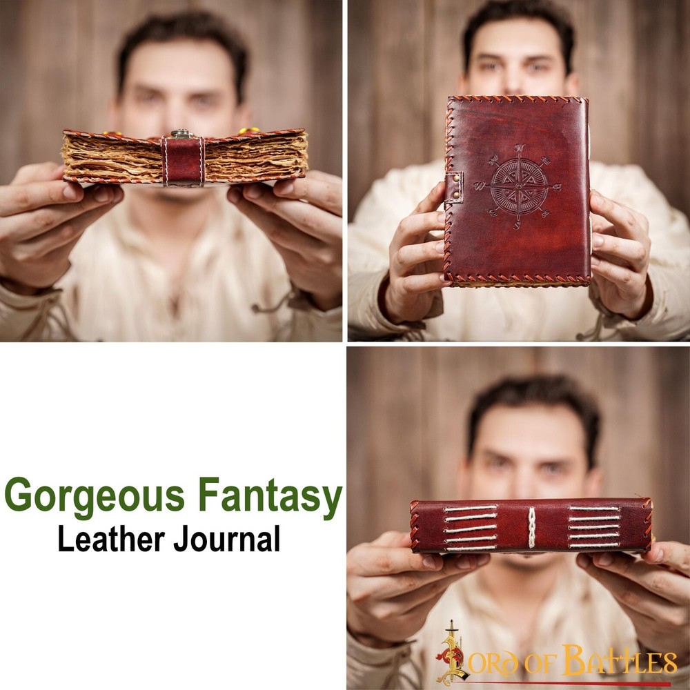 Lord of Battles Medieval 3 Stone Leather Journal with Handcrafted Paper-120 Pages ✔️ ★ Write your own chronicle, hone your calligraphy skills, or simply manifest through journaling, our leather journal is a must have for you. Believe us, you are just a fountain pen and this diary away from an amazing writing experience! ★ ✔️ ★ This (7.5 X 5.5) inches leather journal not only looks unique but surely is in every possible way! It has been handmade from extremely robust 100% REAL TOP GRAIN LEATHER. The 120 antique pages are HANDMADE with perfect deckle-edges, strongly bound together using sturdy leather strings ★ ✔️ ★ TOP QUALITY MATERIAL ★ At Lord of Battles we are genuinely committed to our clients offering nothing but the best ★ Every item unique every item purely Handcrafted ★ Highest possible standards are maintained by using the best quality materials ★ Innovation and creativity are the hallmarks of our company yet we stay true to history ★ Every article is obtained keeping ethics in mind and conserving the environment ★ ✔️ ★ BE THE AUTHENTIC MEDIEVAL ★ Stand out at your epic cosplay event, at a wedding or a LARP ★ Outshine the rest, with our super quality products made out of authentic material and proudly relive history ★ We promise you will be the star of the medieval event ★ Feel the true Lord Of Battles, the most epic character, or simply a ruffian… with our products… You can be the character that the event requires ★ ✔️ ★ SATISFACTION GUARANTEED ★ We assure you of total satisfaction. Let us know if you have a complaint with your purchase, we will do whatever it takes to make it right ★ our business is your happiness ★ Be happy Buy happy ★ About Us: We are your specialist dealer for Reenactments, Middle Ages, movies and LARP. Our experience of more than 25 years in this sector makes us your expert provider. Become a knight, archer, assassin, any character within your imagination. Make your film incredible, become or remain the best production company possible using our products. We have the best quality in the market creating what you want, if we don’t have it. Steel armor, leather armor, chainmail, battle ready weapons and shields, horns, clothing, and accessories. In our catalogue you will find everything you need. We are Lord of Battles. Shipping: Most orders will ship out within 1-2 business days of ordering. Your order will be shipped with Standard Service. Once shipped, orders are generally received within 7 business days. We do not ship on Saturdays, Sundays, or holidays. While we will do all we can to ensure your order is delivered on time. Lord of Battles cannot be held responsible for conditions beyond our control such as severe weather, service interruptions, etc. Return Policy: Returns Policy is 30 Days Free Returns based on the original purchase date.