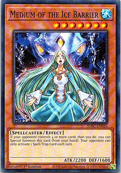 Medium of the Ice Barrier SDFC-EN016 Structure Deck: Freezing Chains 1st Ed. Shipped within 24hrs Mon-Fri. How I package: The card will be in a penny sleeve. The penny sleeve will be in a Toploader. The Toploader will be sealed in a Teambag.