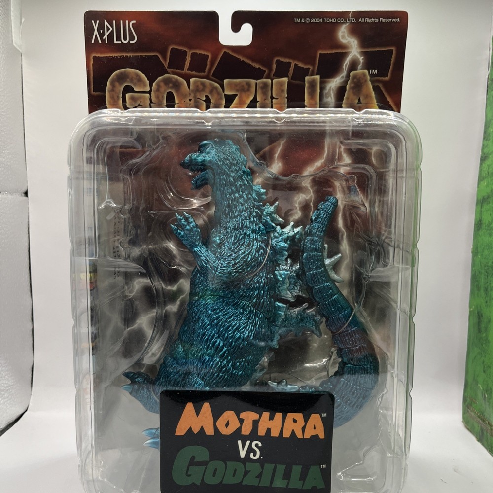 The Metallic Green Godzilla Action Figure by X-Plus is a high-quality collectible from the 2004 Mothra VS Godzilla movie. Made in China, this detailed figure captures the iconic monster in a metallic green design, perfect for fans of the Godzilla series. This action figure brings the legendary creature to life, making it a must-have for any collector or enthusiast of monster-themed toys and hobbies. Super rare in package Picture is of actual item you will receive