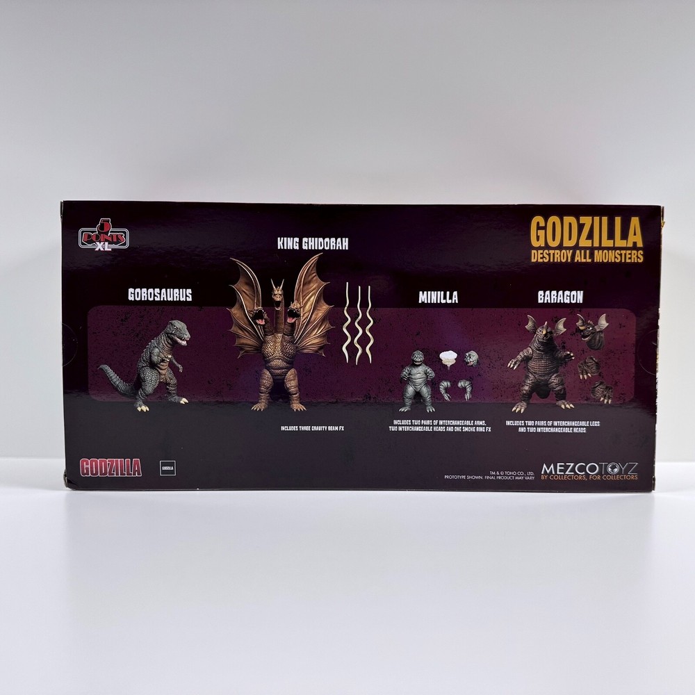 Mezco 5 Points XL Godzilla Destroy All Monsters Round 2 Mint *OPEN BOX* NEW. Box has been opened for inspection only. Trays did not come from factory with seals on them but have never been separated. The figures have never been removed from the package, displayed or articulated. Box has crush to one rear corner. Please see photos as they are part of the description. All reasonable offers will be considered. I have a lot of other Godzilla items & offer combined shipping. If you have any questions please send me a message. Thank you for looking!