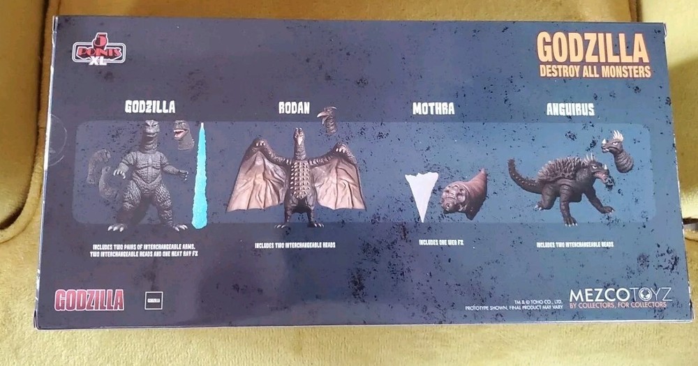 This Mezco Godzilla Destroy All Monsters (1968) 5 Points Round 1 Deluxe Set Box is a must-have for any fan of the Godzilla franchise. The set includes an action figure of the iconic monster, along with other characters, and is made of durable plastic. The blue color of the figure is vibrant and eye-catching, making it a great addition to any collection. The set is an original, licensed reproduction from the year 1968, and is perfect for collectors of vintage toys. The item stands at 4.5 inches tall and comes in a boxed package. This action figure is perfect for display or play, and is suitable for fans of all ages.