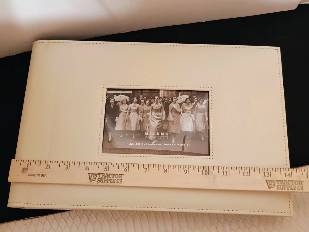 This beautiful photo album book from the Milano Series is perfect for holding 436 of your cherished 4x6 inch pictures. The ivory colored, modern style album is made of high quality artificial leather and is designed to last for years to come. It's the perfect addition to any home or wedding photo album collection. The album is book bound and features a slip-in design for easy photo insertion and removal. It's a great way to preserve your memories and share them with family and friends. This photo album book is brand new and ready to be filled with your amazing photos.