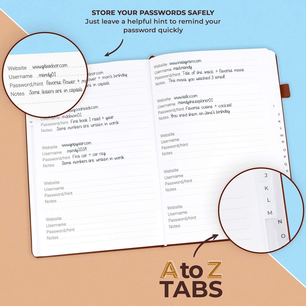 Modern Password Keeper Journal - Premium Password Logbook with Tabbed Sections ‹ › ‹ › ‹ › ‹ › ‹ › ‹ › ‹ › ‹ › Modern Password Keeper Journal -Premium Password Logbook with Tabbed Sections -Never Forget a Password Again! Features: Allows you to create secure passwords and keep them safe and organized Alphabetical A-Z tabs for easy password retrieval Sections for important passwords, wireless & email settings, software license information, and additional notes Designed to be anonymous with no obvious title on the cover for added security Large size (7x10 inches) with eco-leather hardcover, elastic band, pen loop, bookmark, pocket for notes, and thick 120gsm paper 60-day money-back guarantee for your satisfaction Benefits: Effortlessly organize and store all your passwords in one secure place Quickly locate any password with the alphabetical tab system Enhanced security by allowing hints instead of actual passwords High-quality materials and thoughtful design for a premium user experience Peace of mind with the 60-day money-back guarantee Why choose our Password Keeper Journal? Are you tired of struggling to remember all your passwords and login details? The Modern Password Keeper Journal by is here to make your life easier and more secure. With its smart organization system, elegant design, and premium quality materials, this password logbook ensures that you never forget a password again. Say goodbye to the hassle of password management and hello to a more efficient and secure way of keeping track of your sensitive information. Don't compromise on your online security and organization - get your hands on the Modern Password Keeper Journal today! Shipping Free & Fast Shipping - We offer free shipping to most of the USA with a normal delivery time of 3-7 days. However, due to the current situation, additional delivery time (up to 3 weeks) may be required for some items. Alternative Carriers - We may use alternative carriers (e.g. USPS, FedEx, UPS, etc.) to ensure your package arrives safely and on time. Due to the use of multiple carriers, we are unable to provide a tracking number automatically. Handling Time - Orders are processed and shipped within 1-2 business days of receiving cleared payment. Shipping Restrictions - Shipping to Alaska, Hawaii, Puerto Rico, Guam, and other US territories may incur shipping charges or delivery restrictions. Please contact us before ordering, or your order can be refunded/cancelled. State Restrictions - There may be restrictions based on your state of purchase. For example, certain items may not be shipped to California due to state regulations. Contact for Tracking Updates - If you require tracking updates or have any concerns about the delivery of your order, please feel free to contact us, and we will be happy to assist you. Return 30-Day Hassle-Free Returns - We want you to be completely satisfied with your purchase. If you are not, you can return the item within 30 days of receiving it for a full refund or exchange. Easy Return Process - To start a return, simply contact us and we will provide you with a prepaid return shipping label and detailed instructions. Restocking Fee - There are no restocking fees for returns. However, the buyer is responsible for return shipping costs if the return is not due to a seller's error. Refund Processing Time - Refunds will be processed within 5 business days of receiving the returned item in its original condition. Payment We accept all major credit cards, PayPal, and Apple Pay for your convenience. Your payment information is secure and encrypted to ensure a safe and seamless transaction. Please complete your payment within 3 days of purchase to avoid any delays in shipping. Feedback Your feedback is extremely important to us. We strive to provide the best products and customer service possible. If you are satisfied with your purchase, please take a moment to leave us a positive review. If you have any concerns or issues with your order, please contact us before leaving negative feedback. We are committed to resolving any problems and ensuring your satisfaction. Contact Us If you have any questions or concerns, please feel free to reach out to our customer support team. You can contact us through the eBay messaging system. We are available Monday to Friday, 9:00 am to 5:00 pm EST, and we will do our best to respond to your inquiry within 24 hours. Thank you for supporting our small family business! Number of Pages: Password Book with Alphabetical Tabs Unit Quantity: 1 Author: Unknown Language: Password Book with Alphabetical Tabs Topic: Organization,Password Management,Data Security Genre: Organization Tools,Planners Features: Faux Leather Bound,Illustrated,Large Print,Bookmark,Pocket for Notes,Alphabetical Tabs,Wireless & Email Sections,Additional Notes Section Edition: Password Book with Alphabetical Tabs Signed By: Password Book with Alphabetical Tabs Illustrator: Unknown Literary Movement: Modernism Book Title: Password Book with Alphabetical Tabs Format: Notebook Publisher: Clever Fox Book Series: Password Book with Alphabetical Tabs Original Language: Password Book with Alphabetical Tabs Type: Password Organizer Era: Modern Item Height: Password Book with Alphabetical Tabs Item Length: Password Book with Alphabetical Tabs Item Weight: 1.32 pounds Item Width: Password Book with Alphabetical Tabs