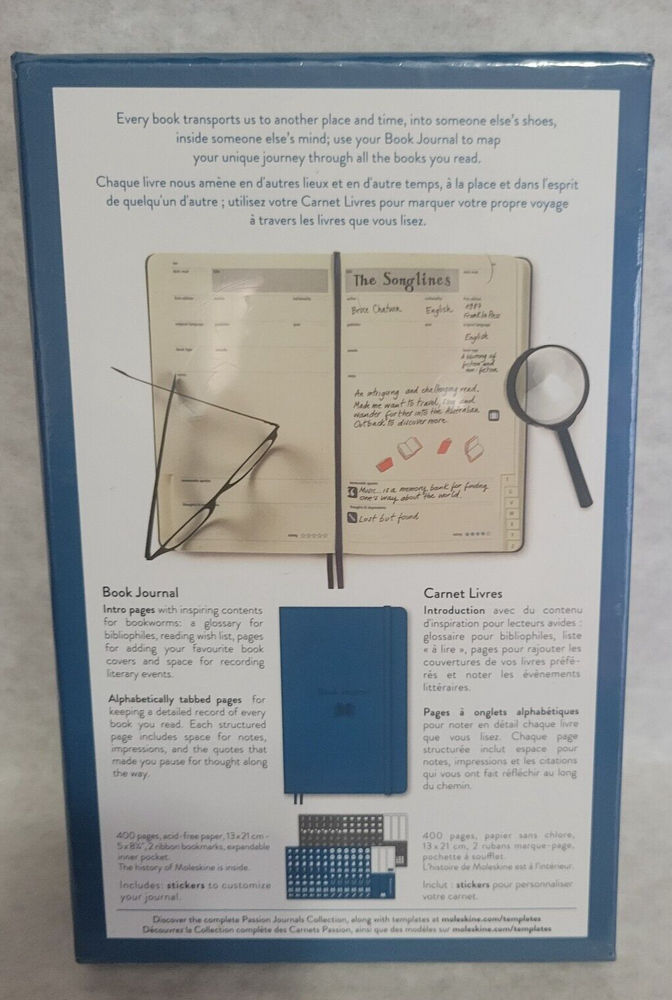 We try our best to ship out your purchase the same day; otherwise shipped the next business day. We have no control how long the carrier will take to deliver your items once the item has been dropped off at the carrier. Moleskine Book Journal - NEW Every book transports us to another place and time, into someone else's shoes, inside someone else's mind; use your Book Journal to map your unique journey through all the books you read Product Description: Sealed Blue Alphabetically tabbed pages 400 pages acid free paper 13 x 21 cm Ribbon bookmarks Expandible inner pocket Stickers Comes from smoke free home Shipping: Item Ships Within 1 Business Day of Receiving Payment Returns and Concerns: Please note that I try to look over every item before listing and shipping. If I do overlook something, please contact me to arrange an exchange or refund. I offer a 30 day return policy. Please return the item as it was shipped to you, unopened and in original packaging. All shipping costs (original and return) are to be paid by the buyer. Please contact me before leaving negative or neutral feedback. I will do everything possible to ensure 100% satisfaction. Please email me with questions. Thanks for looking.