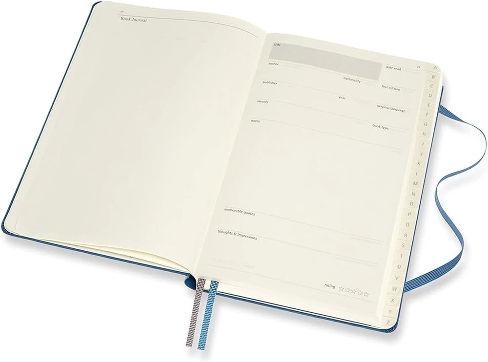 Further Details Title: Moleskine - Book Journal, Theme Notebook - Hardcover Notebook to Collect and Organise Your Books - Large Size 13 x 21 cm - 400 Pages Condition: New Release Date: 03/05/2018 Item Height: 219mm Description: The Moleskine Book Journal lets you to keep a detailed record of every book you read. It features structured sections to capture your thoughts and impressions, and space to note down the quotes and passages that made you pause for thought along the way. Every book transports us to another place and time, into someone else’s shoes and inside someone else’s mind; use your Book Journal to map your unique journey through all the books you read. Item Weight: 598g Item Width: 31mm Brand: Moleskine Features: Hard Cover Dimensions: 13.97 x 3.18 x 21.91 cm; 598.74 Grams Paper Size: A5 Item Length: 139mm Type: Memo Books, Notepads & Scratch Pads Number of Items: 1 Style: Passion Journal Theme: Book Color: Blauw Ruling: College MPN: PASBOOK Cover Material: Cardboard Ruling Type: Plain Binding Method: Diary Pages: 400 The notebook is designed to grow along with your literary experience. Store your memories, the impressions and emotions which your books have left on you in a detailed and personal way The alphabetical organisation allows you to have an ordered and structured space with all the most important information on each book of every kind. Write down your thoughts, collect the quotes and the passages which have most affected you Every book is a journey to other times and other places, in someone's shoes. This notebook will be the map of your route, a travel diary of all the places, times and people you meet in each book: your personal literary history It will sit proudly on your shelf, next to the books which have most inspired and impassioned you It is packaged in an elegant protective box, for a fantastic gift idea for those who like to get lost in the pages of a book Missing Information? Please contact us if any details are missing and where possible we will add the information to our listing.