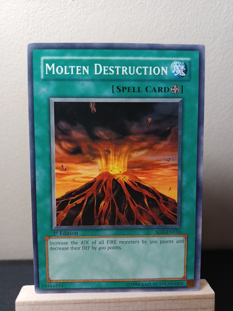 Molten Destruction 1st edition Common from SD3 in LP condition. Please see pictures and feel free to ask any questions prior to purchase. All orders usually ship within 24 hours except on days USPS is closed. Most orders under $20 will ship via eBay standard envelope, orders over $20 will ship via USPS Ground Advantage. We do everything we can to ensure your purchase arrives in a timely manner and in the same condition shown on the listing. Please check out our eBay store as well for more cards and discounts.