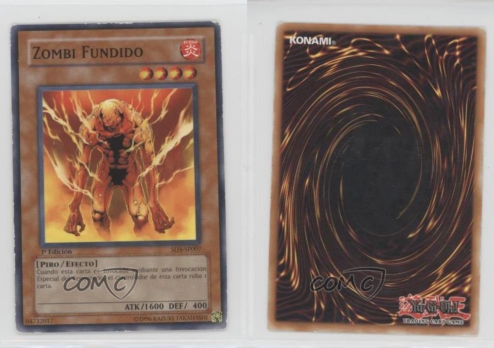 2005 Yu-Gi-Oh! Blaze of Destruction - Structure Deck [Base] - Spanish 1st Edition #SD3-SP007 Molten Zombie COMC Item: 103045668 - YuGiOh Card - Featuring Molten Zombie Search for more: 2005 Yu-Gi-Oh! Blaze of Destruction Search for more: 2005 Yu-Gi-Oh! Blaze of Destruction - Structure Deck [Base] - Spanish 1st Edition View all of our Listings Auctions Buy It Now About Us Located in the beautiful Pacific Northwest, COMC (Check Out My Cards) is the world's largest consignment service for trading card singles. More than 10,000 people have used our consignment service to list over 50 million trading cards. Find out how we can help you consign your items on eBay by contacting us through eBay messaging. COMC -- "The Safe & Easy Way to Buy & Sell" Raw Condition for Modern Cards Unless otherwise noted, raw modern cards are listed in Near Mint-Mint condition or better. A NM-MT card appears to be Mint at first glance, but upon closer inspection, may exhibit some of the following: minor print defects (e.g. roller marks, print line, dimple), minor scratches, slight edge wear, and slight corner wear. Centering is clearly visible in the images provided and does not factor into our condition assessment. Raw Condition for Vintage Cards Unless otherwise noted, raw vintage cards are listed in Excellent condition or better. An EX card may exhibit some of the following: minor rounding of corners, surface wear, print defects, light scratches, and slight edge wear/chipping. Centering is clearly visible in the images provided and does not factor into our condition assessment. Domestic Shipping Combined shipping for multiple items is available. To receive combined shipping, please ensure all desired items are in your eBay shopping cart before proceeding to checkout. eBay limits orders to 40 items per order. We automatically combine multiple orders placed on the same day. If you place multiple orders on the same day, please contact us to request a refund of applicable shipping costs. Signature confirmation may be required on invoices over $400. All cards are protected and shipped securely. International Shipping COMC offers eBay's International Shipping (EIS) for international orders under $2,500* (see country exceptions below). All duties and import fees are paid at checkout; in the rare event that there are additional import fees upon delivery, these are borne by the buyer. EIS packages route through a shipping hub in Erlanger, KY before shipping to their final destination. Please note that EIS does not allow for combined shipments. The shipping rates are determined by eBay and cannot be adjusted. *Maximum sale price exceptions: Colombia, Kuwait ($2,000); Taiwan ($1,539); Chile, Costa Rica, Guatemala, Honduras, Trinidad and Tobago ($1,000); Antigua and Barbuda, Aruba, Belize, Dominica, Grenada, Philippines, Saint Kitts and Nevis, Saint Lucia, Montserrat, Turks and Caicos Islands ($500); Dominican Republic, El Salvador ($200). Please request a shipping quote through eBay messaging for orders that exceed the maximum sale price supported by eBay's International Shipping. You will be responsible for all duties and import fees for international orders shipped outside the EIS. All cards are protected and shipped securely. Payment COMC does not accept offers on our cards through our eBay storefront. COMC utilizes eBay’s managed payments system. If you are experiencing difficulties making a payment, please contact eBay for assistance. Return Policy Returns are only accepted on the rare occasion the item is not as described. If you are making a return, please initiate the return process through eBay so a mailing label can be provided for you. Prior to listing, our expert team carefully assessed this item to represent it accurately. Please review the description and high-definition images prior to purchasing to ensure this item meets your satisfaction. We welcome you to contact us if you have further questions about this item. Trust and Integrity COMC carefully assesses each item consigned to us to prevent fraudulent items from entering the marketplace. If you believe an item offered on COMC may be fraudulent, please contact us with details so we can investigate the issue. Items we determine are outside our supported items policy may be removed. Last Modified: 5/31/2025 8:36:13 AM PDT