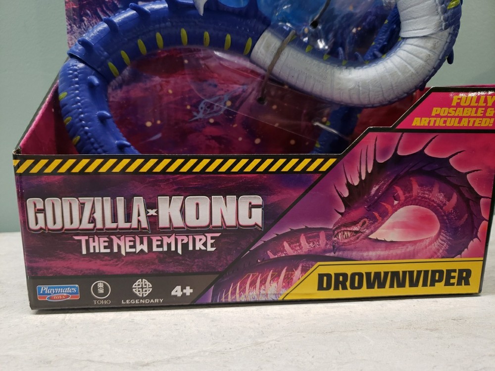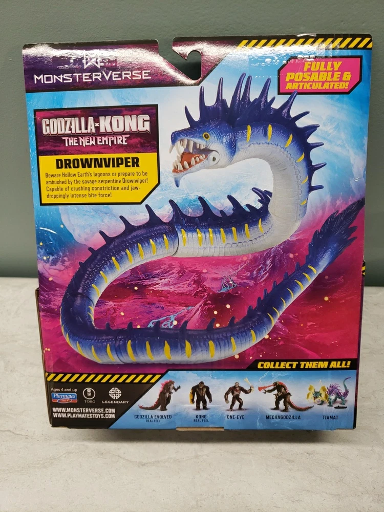 Unleash the thrill of the epic battle from the "Monster Verse" with the Godzilla x Kong: The New Empire Drownviper Action Figure. Crafted by Playmates Toys, this multicolored collectible brings the formidable serpent to life, complete with adjustable features and presented in its original boxed packaging. Designed for fans of the franchise, the Drownviper figure is an essential addition to any Godzilla collection, capturing the essence of the movie's intense rivalry. The action figure is made from durable plastic and is suitable for ages 4 and up, appealing to both collectors and young enthusiasts alike. Despite being an unlicensed reproduction, it stands as a remarkable representation of the iconic character, embodying the spirit of the "Movies" theme without the need for signatures or vintage status. Dive into the "Monster Verse" and recreate your favorite cinematic showdowns with this detailed Drownviper figure.