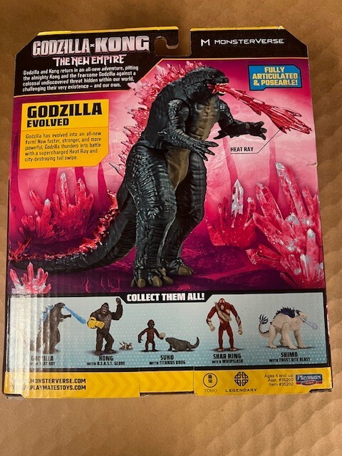 Unleash the power of the legendary beast with the Playmates Toys Godzilla x Kong: The New Empire Monsterverse action figure. Capturing the essence of the iconic creature from the latest installment of the MonsterVerse, this 8-inch figure boasts intricate details and dynamic articulation, allowing for a wide range of motion and reenactment of favorite scenes. Crafted from durable ABS plastic, it's designed for both play and display, making it a must-have for collectors and fans alike. The figure comes in its original, unopened packaging, ensuring it remains pristine and well-protected. With features like fully jointed adjustable limbs, it's perfect for recreating the fierce battles seen in the movies or creating new adventures. This exclusive item, still in its early release phase, is a special addition to any Godzilla or Monsterverse collection, reflecting the legacy of the franchise and the craftsmanship of Playmates Toys.