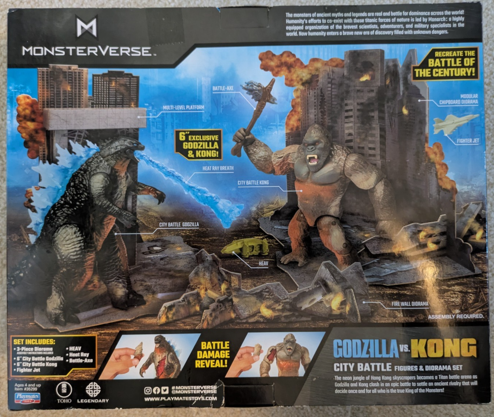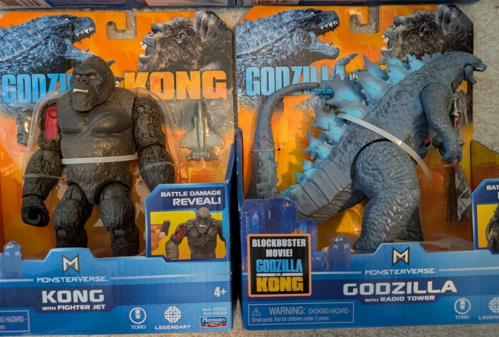 Lot of 5 Godzilla vs Kong playmates action figure 1. Monsterverse Godzilla vs Kong City Battle Figures and Diorama set NIB, box has some minor damage, was pressed between two other boxes- see photos. great option for someone who wants to take the figures out of the box 2. Monsterverse Godzilla vs Kong Hong Kong Battle Godzilla NIB, box in good shape like new 3. Monsterverse Godzilla vs Kong Hong Kong Battle Kong NIB, box in good shape like new 4. Monsterverse Godzilla vs Kong Kong with Fighter Jet NIB, box in good shape like new 5. Monsterverse Godzilla vs Kong Godzilla with Radio Tower, box in good shape like new Priced to sell, items have been on display, unopened. Long time private collectors looking to reduce our collection of Godzilla figures. Be sure to check out our other listings.
