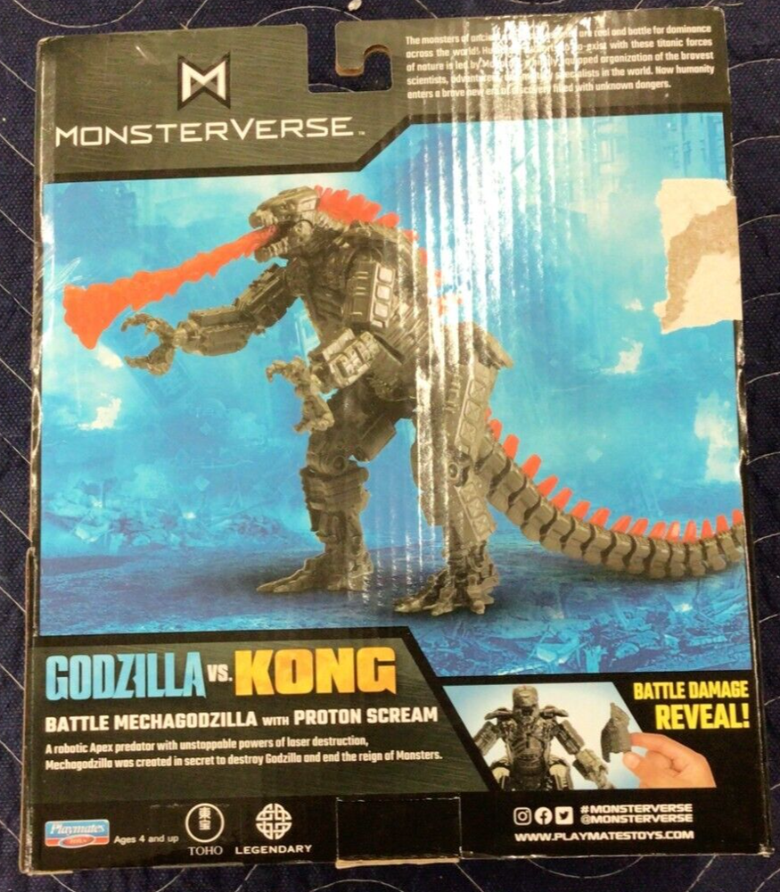 The Monsterverse Godzilla VS Kong BATTLE MECHAGODZILLA 6" Figure by Playmates Toys is a plastic action figure of MechaGodzilla from the Godzilla franchise. It is a custom figure of the character featured in the movie "Godzilla vs. Kong" released in 2022. The figure stands at 6 inches tall and includes a feature called Proton Scream. This unassembled kit/set represents the epic battle between Godzilla and MechaGodzilla in the Monsterverse. STO3-2/5/25-9-ShS(2)