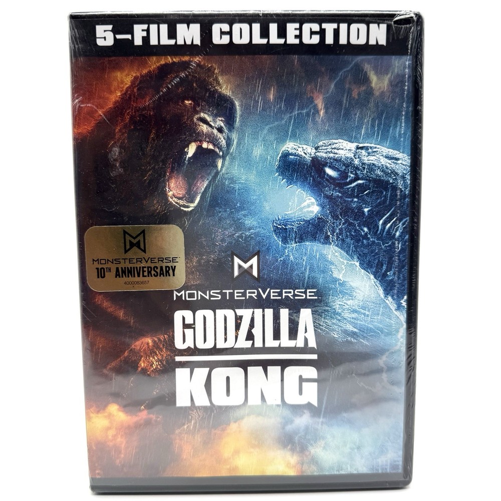 Detailed Description: Celebrate a decade of colossal showdowns with the Monsterverse: Godzilla x Kong 5-Film Collection — the ultimate tribute to Legendary’s epic cinematic universe. This 10th Anniversary edition brings together five action-packed blockbusters featuring your favorite titans in earth-shattering battles. Includes the following films on DVD: 1. Godzilla (2014) 2. Kong: Skull Island (2017) 3. Godzilla: King of the Monsters (2019) 4. Godzilla vs. Kong (2021) 5. Godzilla x Kong: The New Empire (2024) Key Features: • Official Warner Bros./Legendary release • 10th Anniversary gold seal on cover • PG-13 rated (all films) • Dolby Audio & SDH subtitles • Region 1 / NTSC format From the mysterious depths of Skull Island to the explosive cityscape battles between Godzilla and Kong, this collection is a must-have for fans of monster movies and cinematic spectacle. Condition: Brand New & Factory Sealed Format: DVD – 5-Movie Set