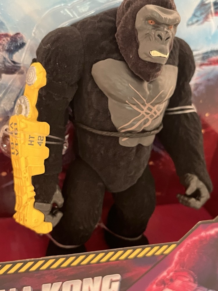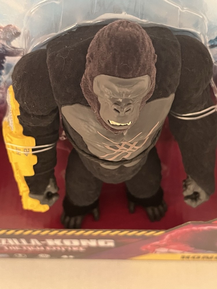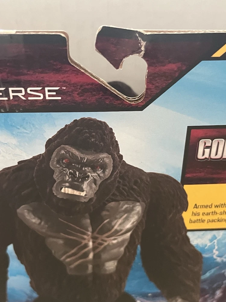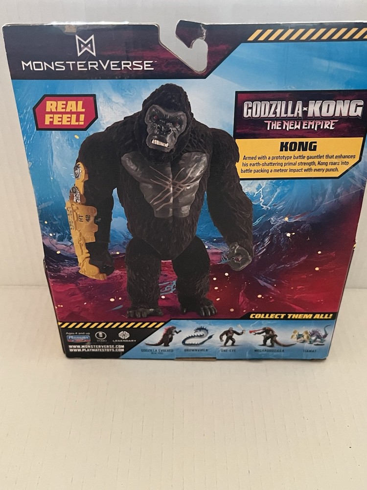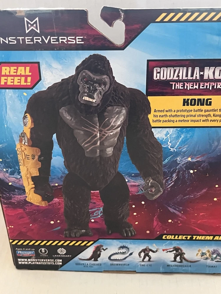 The "Monsterverse KONG Reel Feel Action Figure" is a Playmate toy released in 2025. It features a Godzilla x Kong theme with a flocked texture, suitable for ages 4 and up. The toy brings to life the epic battle between Godzilla and Kong in the new empire. Dimensions: 6” Action Figure Kong Armed with prototype battle gauntlet. Condition: Brand new in box (box shows shelf wear) Em11Z-4