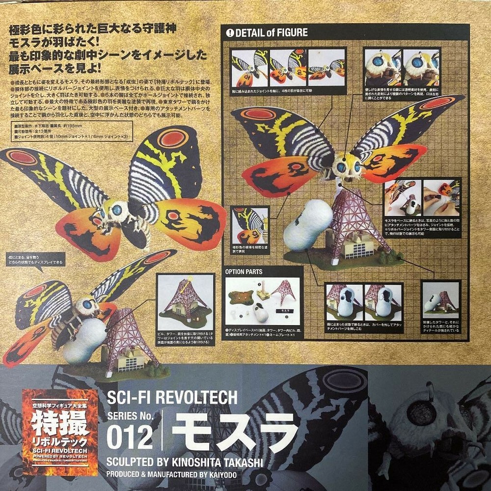 This Mothra action figure is absolutely stunning! The details are incredibly sharp, and the Revoltech joints allow for dynamic posing—perfect for display or play. The paintwork is vibrant, just like the classic movie monster. Shipping from Japan was fast and well-packed. A must-have for any Godzilla or kaiju fan collection!