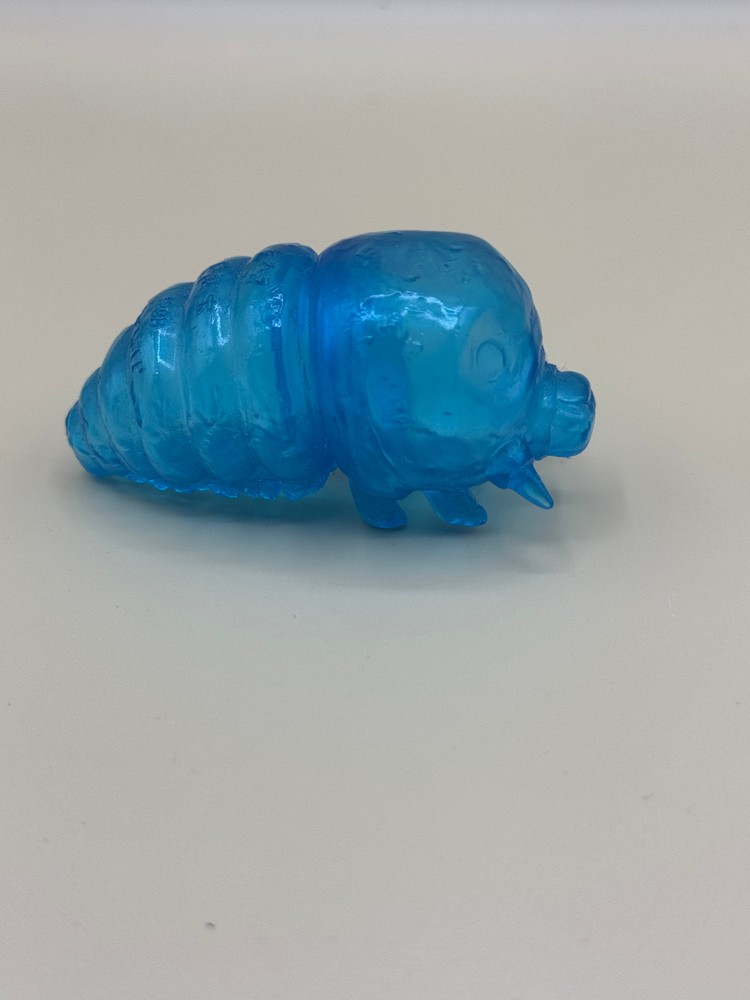 In 2000, along with a series of clear blue Vinyl Paradise releases, Marmit also gave us a set of 5 mini-figures (Godzilla, Rodan, Mothra Larva, Hedorah, Anguirus) with the same treatment. This "tiny series" is a collector-favorite and has become more and more difficult to track down (for a reasonable price) over the last few years. This MOTHRA LARVA is 2" long. No packaging.