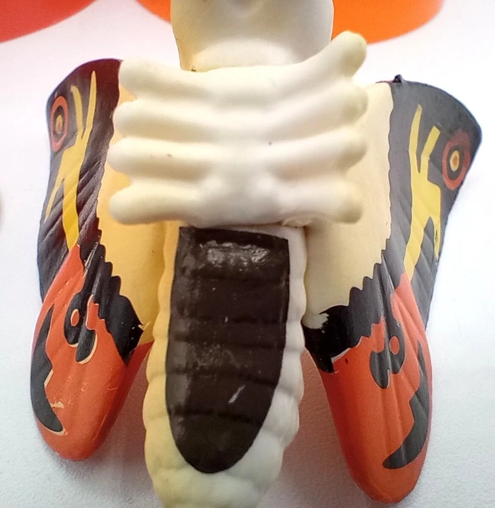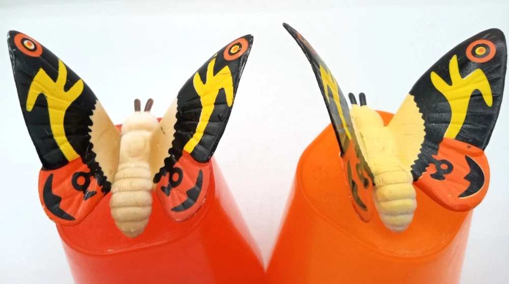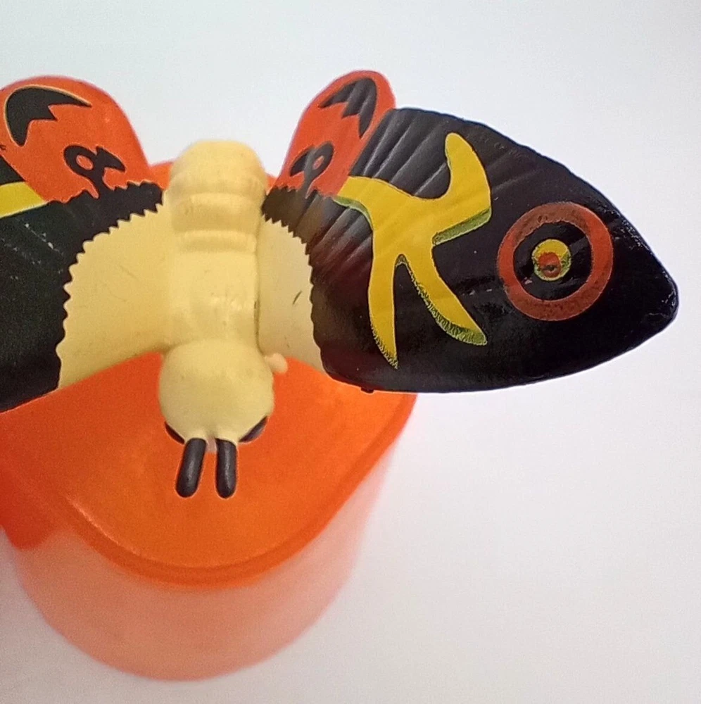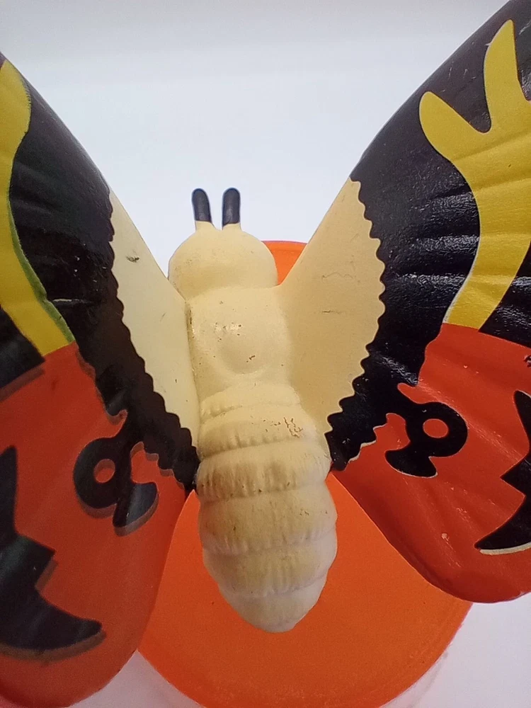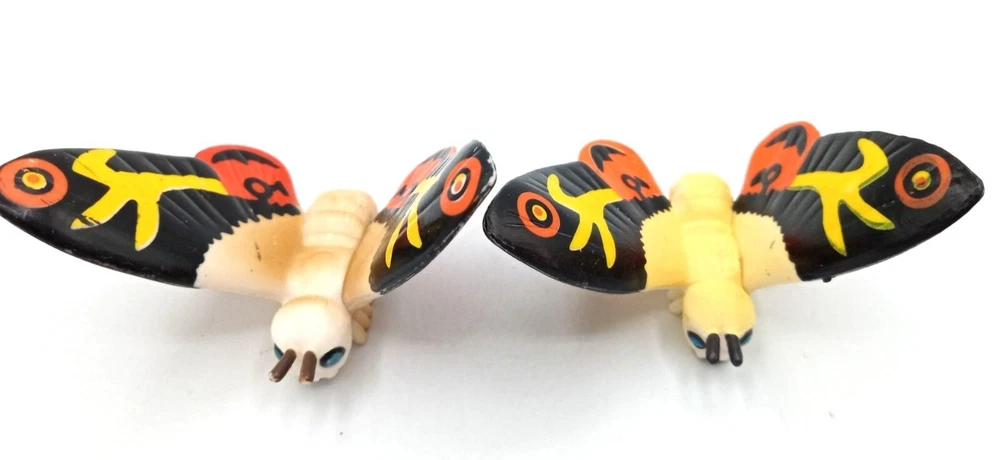 Add some classic kaiju charm to your collection with this set of 2 vintage-style Mothra mini figures! Each features bright, bold colors and stylized wings that capture the spirit of Toho’s iconic monster. With expressive faces and intricate wing patterns, these figures are a must-have for Godzilla collectors, Mothra fans, or retro monster toy lovers. Perfect for shelf display, dioramas, or as a nostalgic gift for any fan of the Godzilla cinematic universe. Each mothra figure is 1.5 inches long and 2 inches in height. Please see photos for condition issues, I try to list anything I see here as well and feel free to send me a message with any questions. Minor scuffs from age but display beautifully.