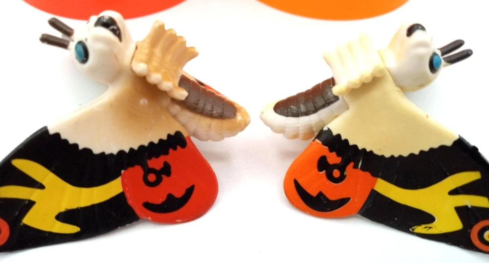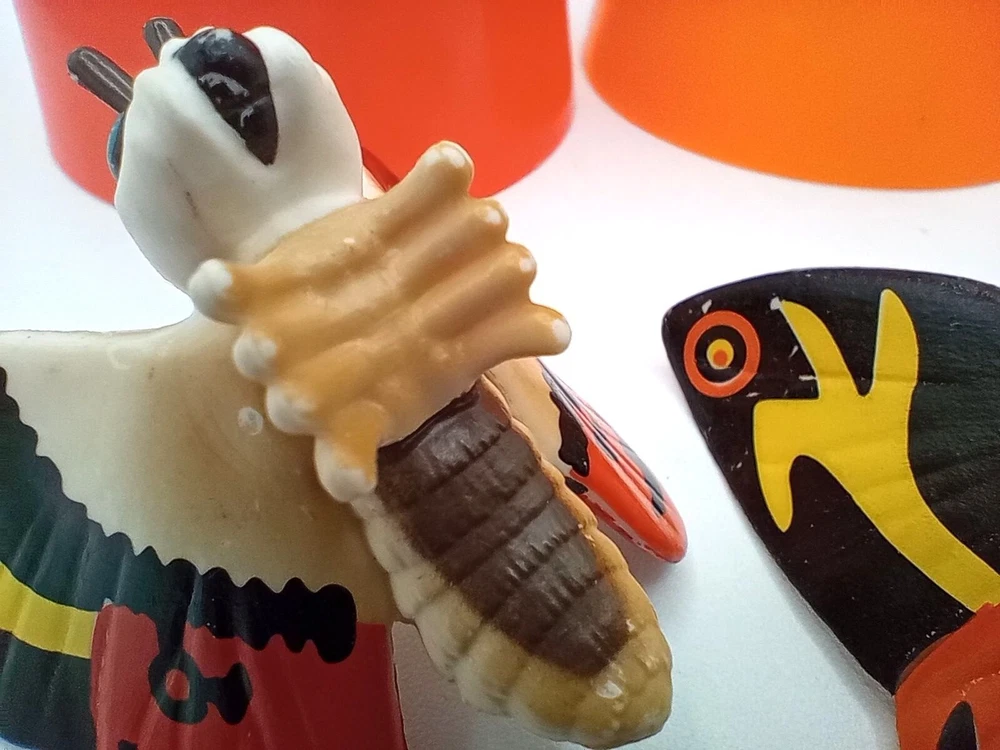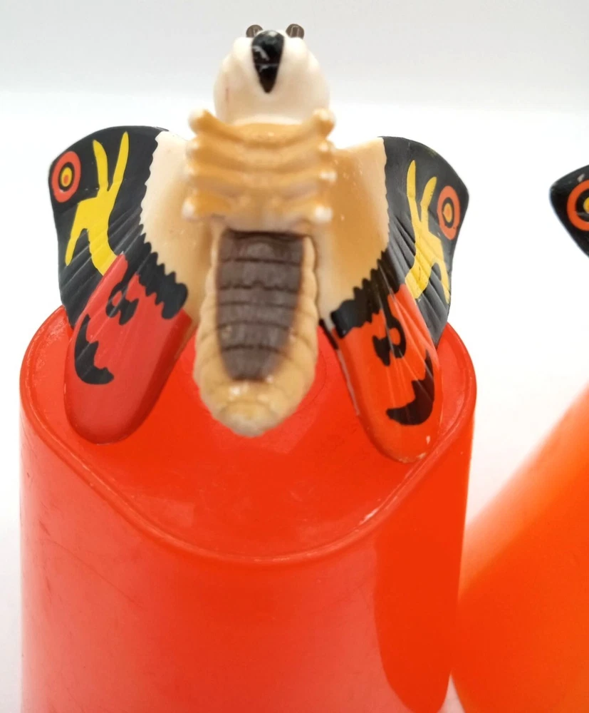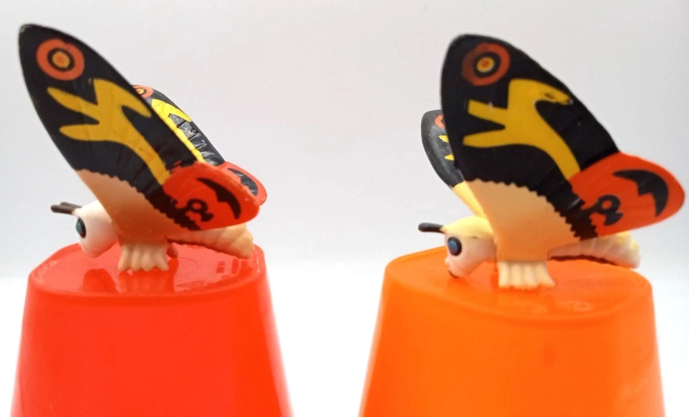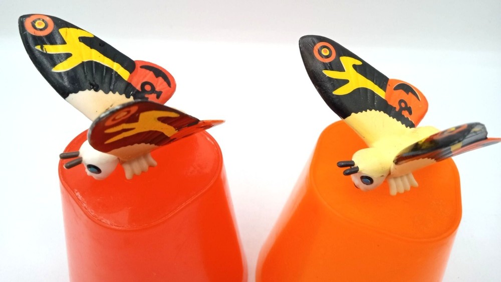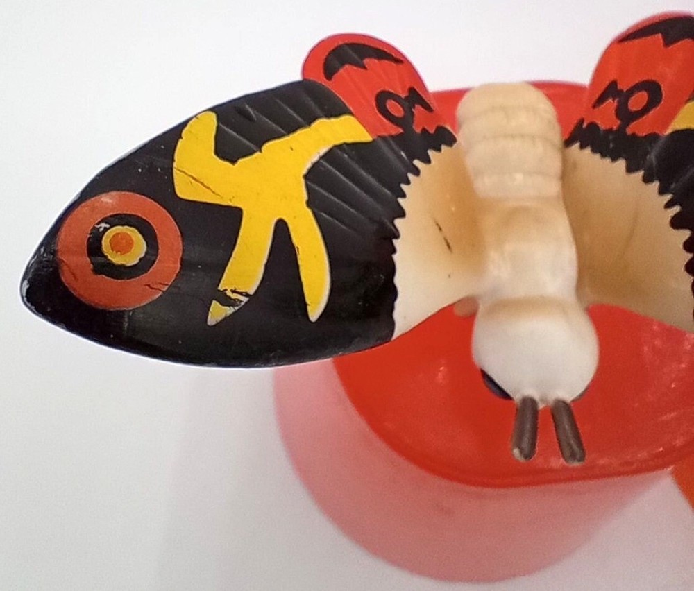 Add some classic kaiju charm to your collection with this set of 2 vintage-style Mothra mini figures! Each features bright, bold colors and stylized wings that capture the spirit of Toho’s iconic monster. With expressive faces and intricate wing patterns, these figures are a must-have for Godzilla collectors, Mothra fans, or retro monster toy lovers. Perfect for shelf display, dioramas, or as a nostalgic gift for any fan of the Godzilla cinematic universe. Each mothra figure is 1.5 inches long and 2 inches in height. Please see photos for condition issues, I try to list anything I see here as well and feel free to send me a message with any questions. Minor scuffs from age but display beautifully.