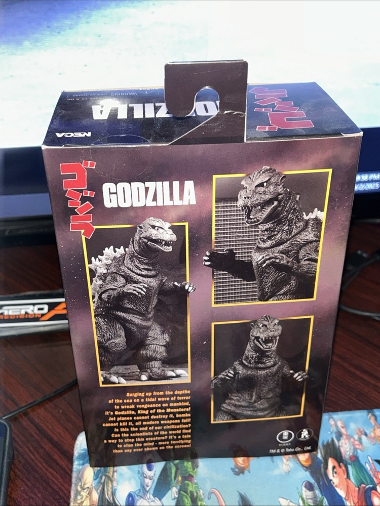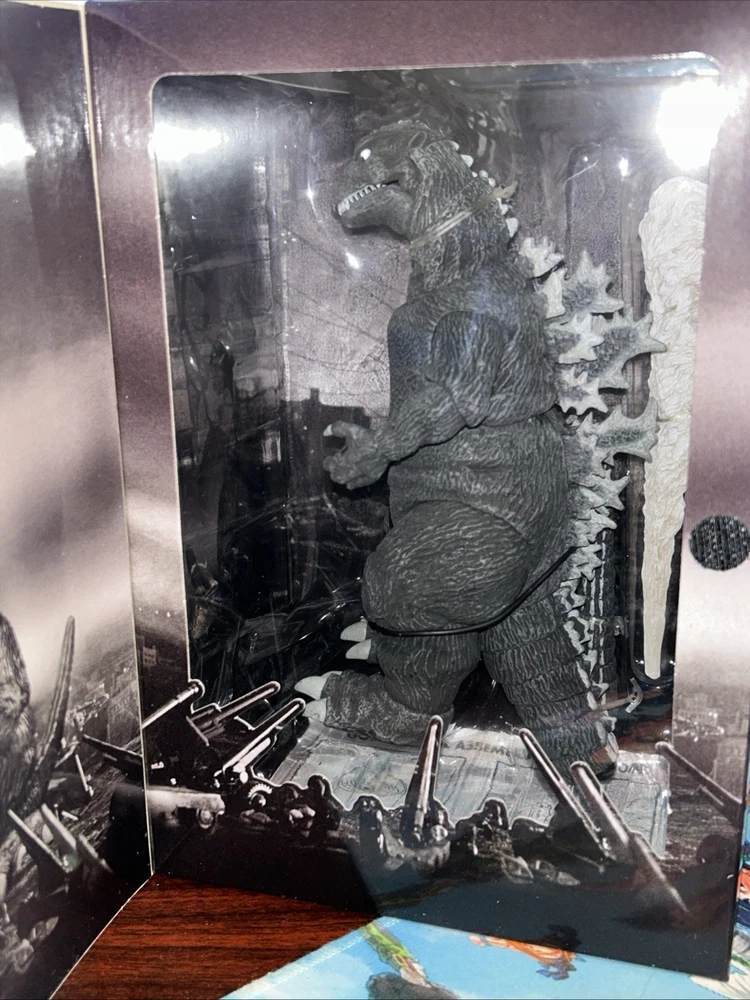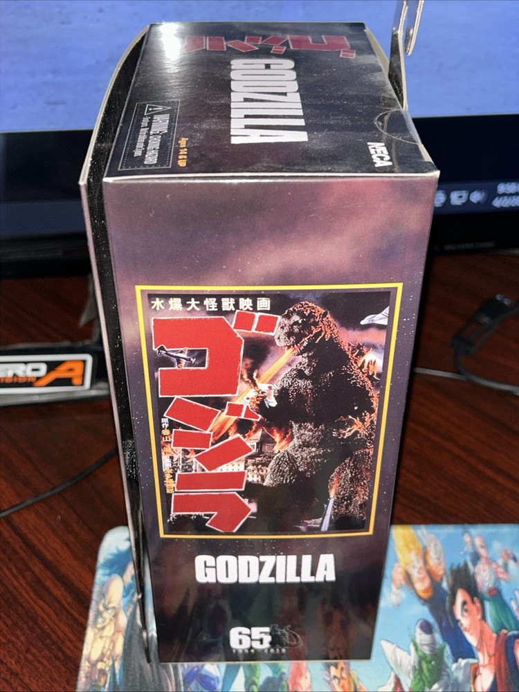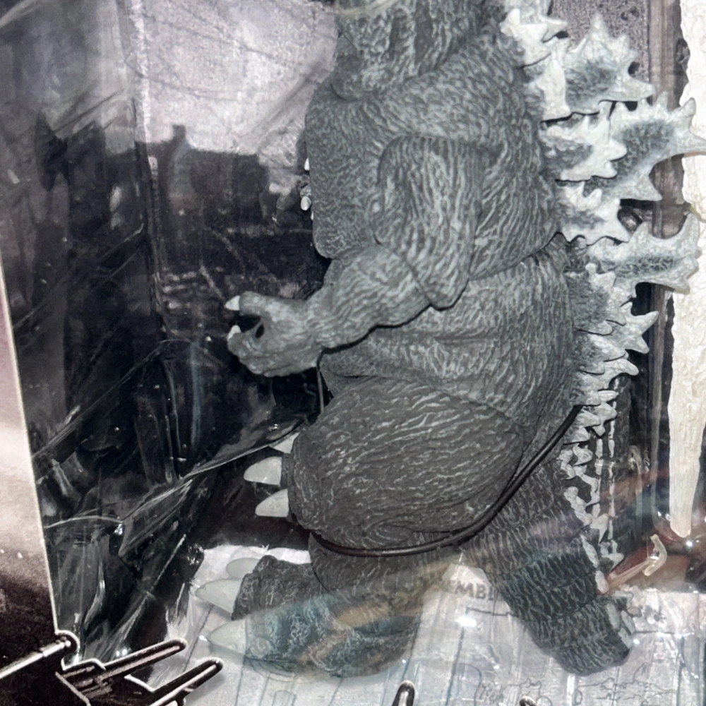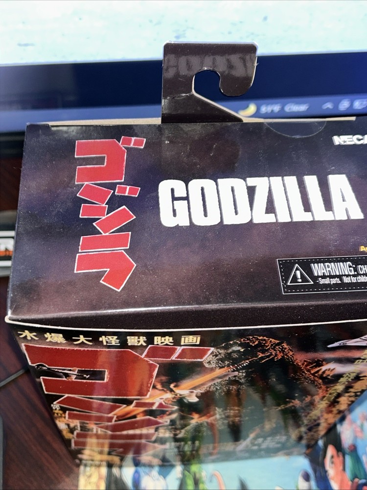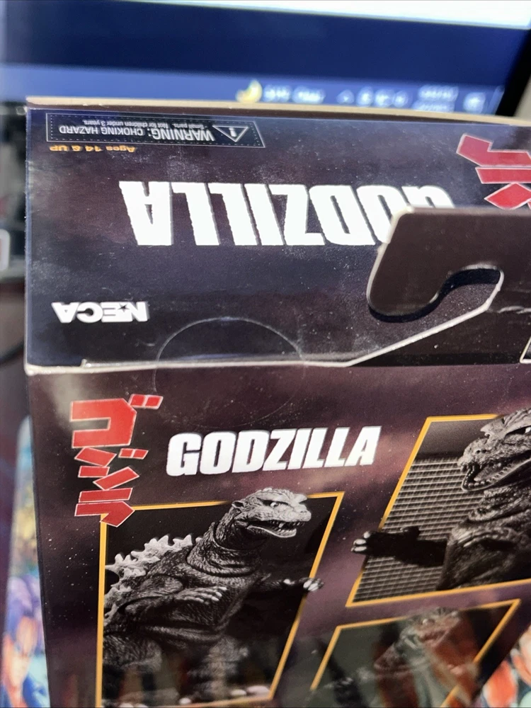 This NECA Godzilla 1954 action figure is a must-have for any fan of the franchise. With its highly detailed design and sturdy plastic construction, it is perfect for collectors and enthusiasts alike. The figure features NECA's part number 42806 and is brand new, ready to be displayed or played with. The action figure is suitable for ages 12 and up, making it a great gift for teens and adults. Its impressive size and intricate details make it a valuable addition to any collection. Take a look at the photos to see the figure's impressive design and don't miss out on the chance to own this iconic piece of Godzilla history. Box is not perfect, hangers bent corners has a slight bend, please see pictures before purchasing