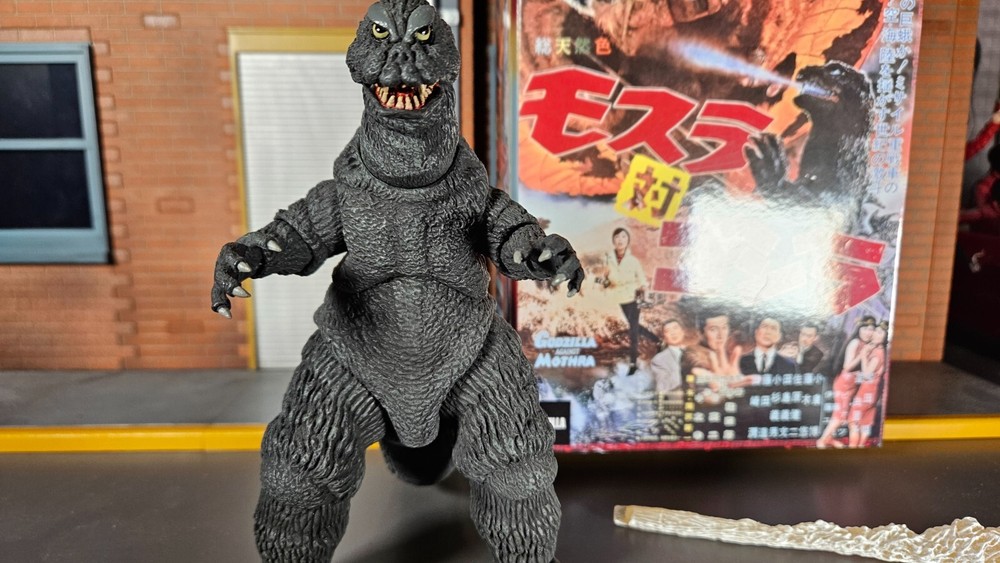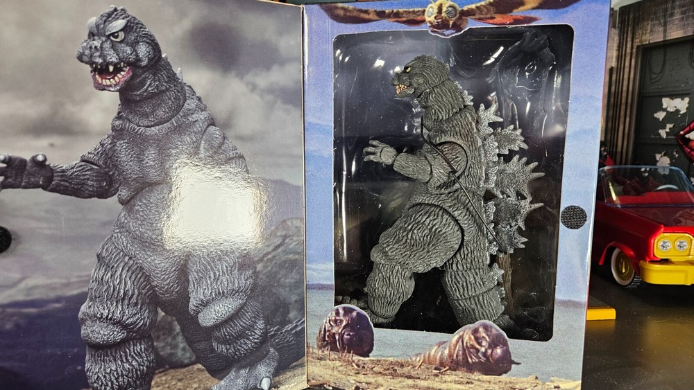 This auction is for a 1964 Godzilla figure that NECA had released several years ago. He is in great condition and includes his original box, albeit not in great condition, specifically the peg hook piece. He stored in a detolf from the moment I received him, so he is only slightly dusty. Typically, he sat in there on display outside of the times I used him for toy photography. If you have any questions, please contact me immediately. Shipping will be free to the US while all others must adhere to ebay's international shipping policies.