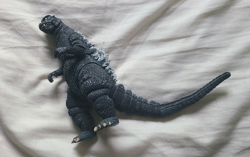 This NECA Godzilla 1984 figure is awesome! The sculpt and paint are spot-on, capturing the classic '84 look perfectly. Even without the box, it's in fantastic shape—no damage, just minor dust from display. Articulation is solid, and the details are crisp. A must-have for any Godzilla fan!