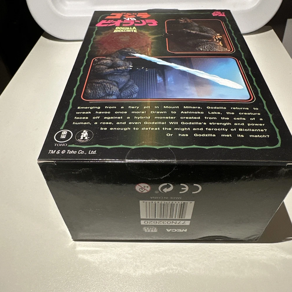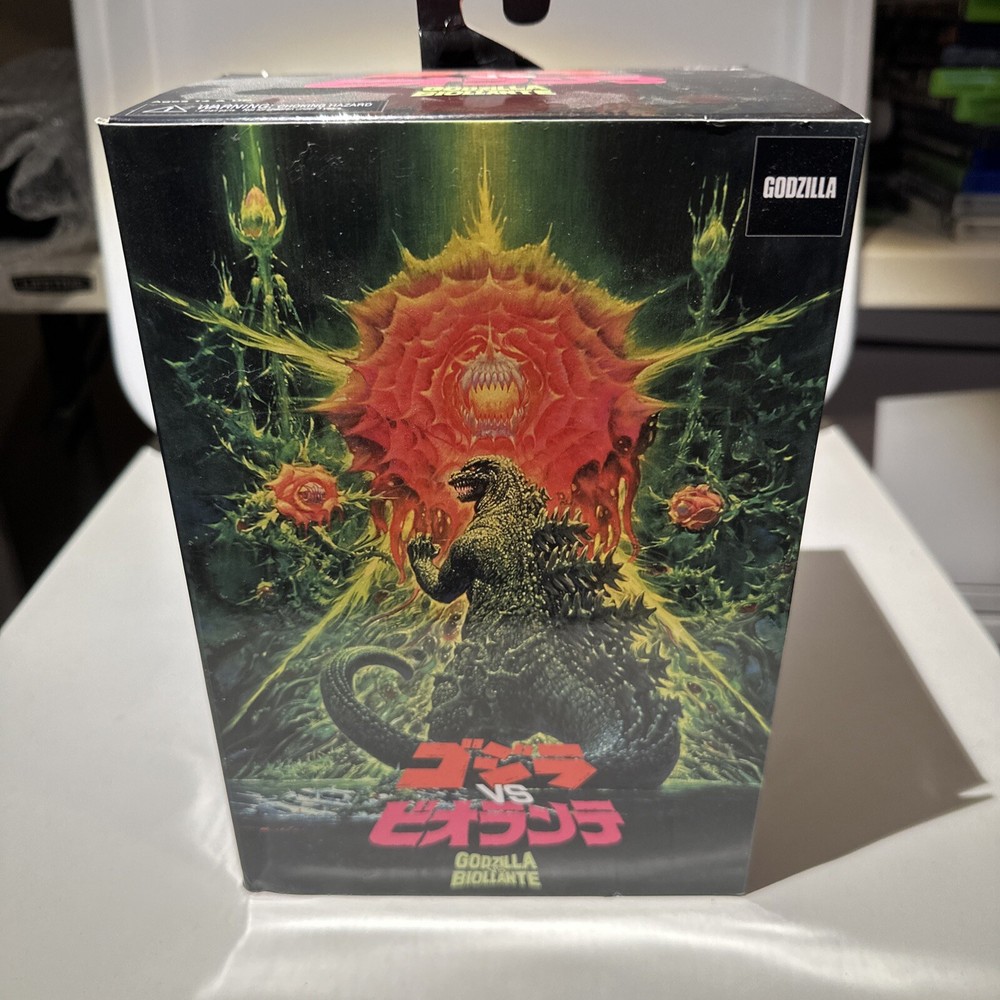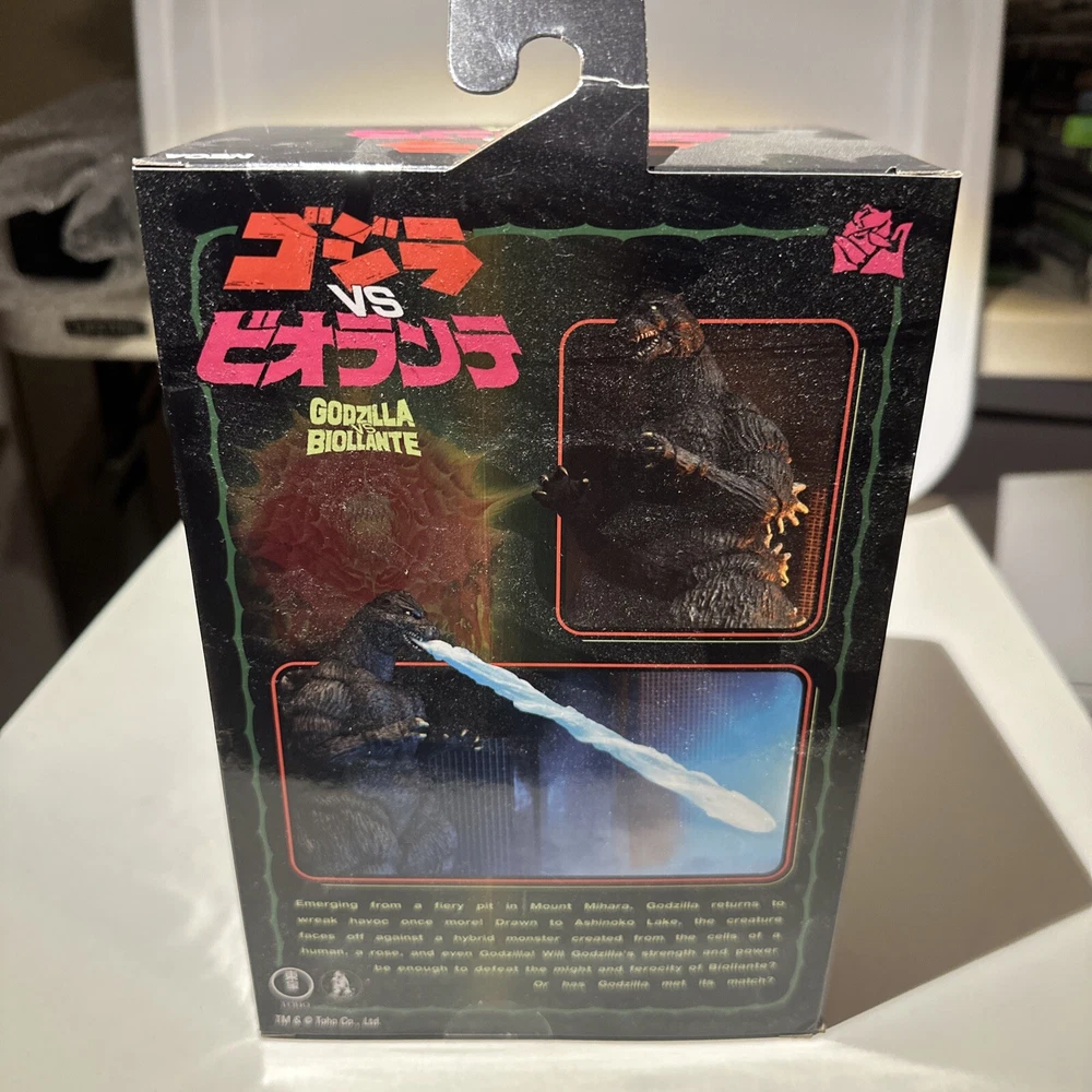 This NECA Godzilla VS Biollante Action Figure Set is a must-have for any fan of the 1989 movie. The set includes a 12-inch long figure of Godzilla and a 7-inch figure of Biollante, both made of high-quality plastic and featuring incredible attention to detail. The figures are unopened and come in their original packaging, making this a perfect addition to any collection. The set is part of the Reel Toys series and is an original, licensed reproduction. It is suitable for ages 12-16 years and is sure to impress fans of the Godzilla franchise. Don't miss out on this amazing opportunity to own a piece of movie history.