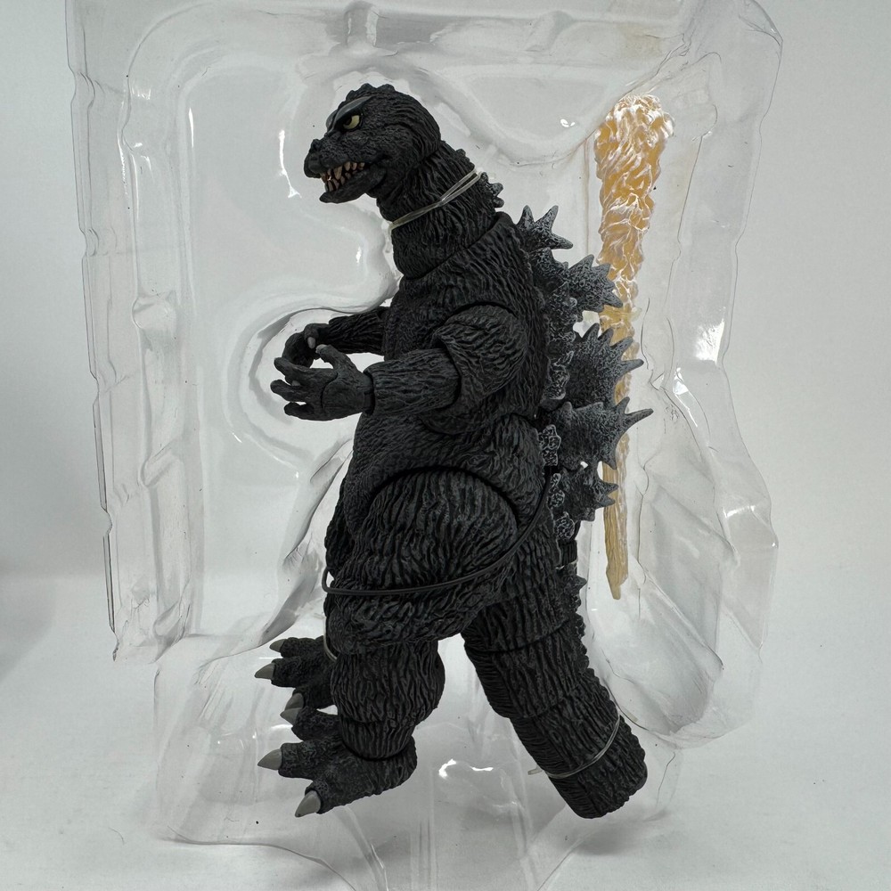 NECA is excited to introduce the next iteration for the most famous kaiju in the world, Godzilla! Based on its appearance in the 1964 film, Mothra vs Godzilla, Godzilla stands approximately 6" tall and measures 12" long from head to tail. Featuring over 30 points of articulation and an articulated tail, Godzilla will come packaged in collector friendly window box packaging with opening flap. Brand new in open box packaging. The back of the box was torn so we removed the contents to photograph. See photos for specific item!