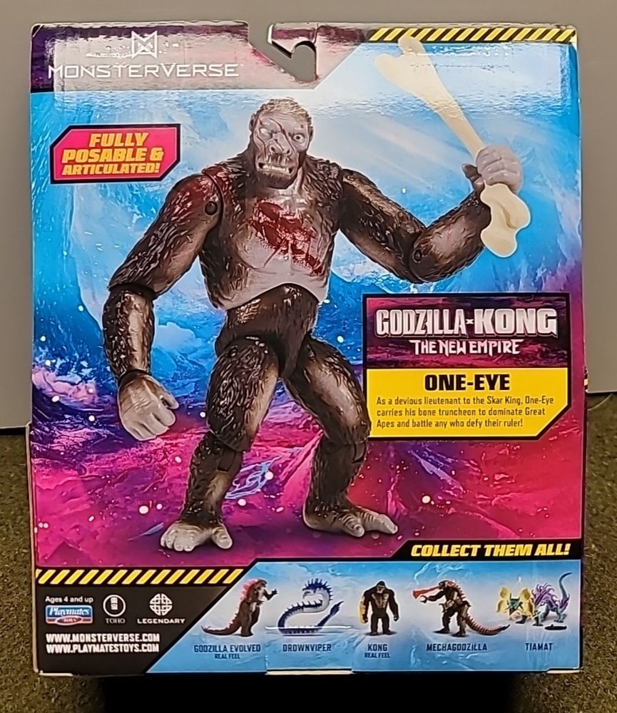 The NEW 2025 MonsterVerse Godzilla x Kong The New Empire 2025 ONE-EYE 6” action figure is a fully posable and articulated toy representing the character One-Eye from the Godzilla franchise. Made of plastic, this multicolored figure stands at 6 inches tall and includes a bone club as an accessory. Produced by Playmates Toys as part of The Original Series, this action figure captures the essence of the iconic monster with intricate details and quality craftsmanship, making it a must-have for fans of Godzilla and Kong. FAST SHIPPING!!!!!!!!!!!!