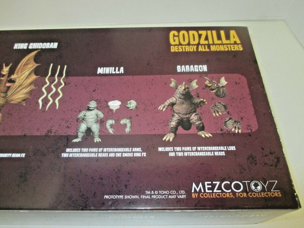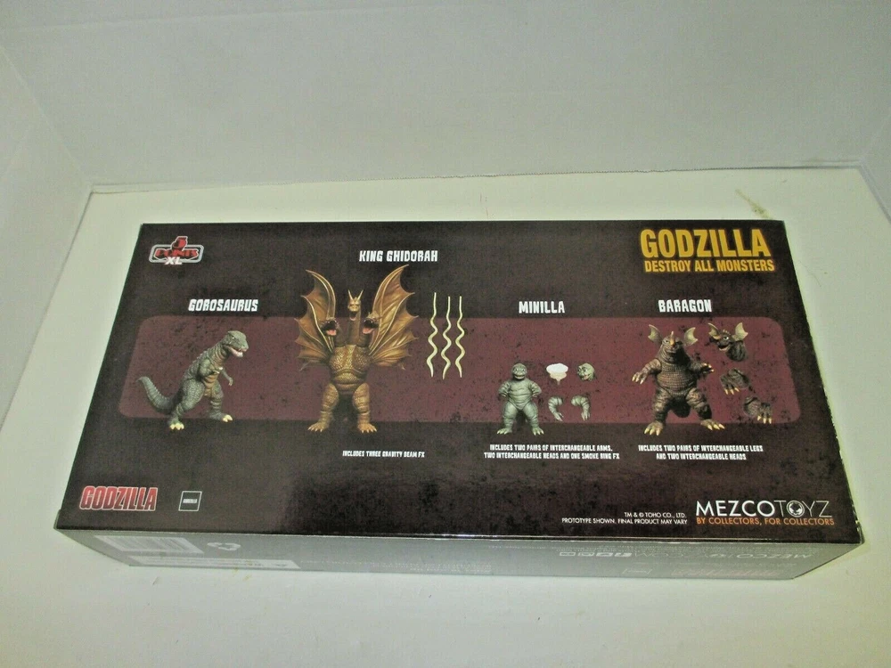 This is the 3.75" scale Destroy all Monsters round 2 box set from the Godzilla 5 Points line. Produced by Mezco in 2022 , the set is mint in a very good factory sealed box. Set includes: Gorosaurus, King Ghidorah, Minilla and Baragon, with accessories. .Shipping is FREE in the US ONLY! . . Due to rising costs by the USPS, all domestic and international shipping costs are calculated for weight and size and weight by USPS / E-Bay for exact postal fees. Sorry we no longer ship internationally except thru the E-Bay Global Shipping Program, thank you. Please checkout my other auctions for more cool toys. We will gladly adjust and combine S&H on multiple wins to save you money. My feedback says it all, my customers come first!! Please feel free to contact us with any questions! Thank you and happy bidding !! REMEMBER IF YOU LIVE IN THE AREA AND WANT TO SAVE SHIPPING YOU CAN ALWAYS PICK THE ITEM UP AT THE STORE !!