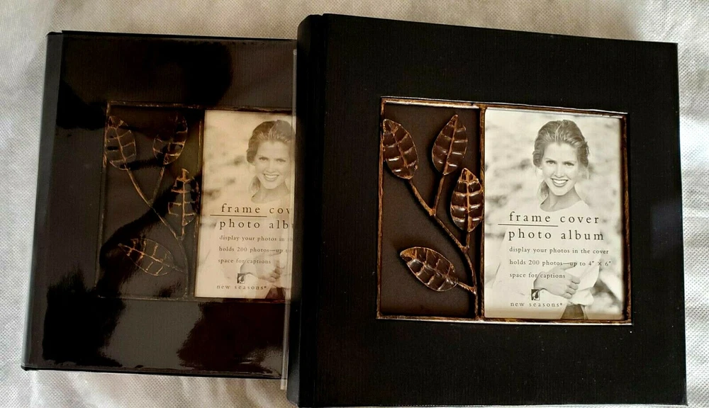 NEW Black Photo Album Books with Leaf Metal Accent Front 200 4x6" Photos x 2 NEW Black Photo Album Books with Leaf Metal Accent Front 200 4x6" Photos x 2 This pair of photo albums are exactly alike. The are black, textured faux leather with a metal bronzed leaf accent on the front and a place to insert a photo on the cover. The books hold 200 photos up to 4" x 6" size and has a space for captions alongside each photo. They measure 9 1/2" x 8 1/2" x 2 1/2" deep and have a combined weight of 4lb 5 oz. Brand new, never used. The have a protective plastic cover on both. Listing is the set for one price. *** Please look at the enlarged pictures as part of description/condition for anything I might have missed. You are buying " as is " and I try to describe the item as clearly as possible. Please email if you have any questions before bidding/buying . Auction payment due within three days. Buy-It-Now due immediately. If an item is listed as a "Buy It Now or Best Offer" all offers will be reviewed and no reasonable offer refused. Upgraded Priority Shipping and Insurance are available for additional fee. All items from a non-smoking, no pet home. Combined Shipping I do offer a combined shipping discount on smaller jewelry type items. The discount only applies to orders that are paid in one transaction. If you are planning on purchasing more than one item, please request a final invoice once you have completed shopping and please wait to pay until you have received the combined invoice with the shipping discount. No Hassle Returns We are happy to guarantee your satisfaction with every purchase in our store. If the return is due to an error on our part we will cover shipping costs. Just email within seven (7) days if you have any problems with your order and we will handle it for you right away.