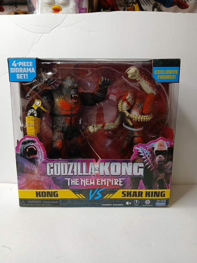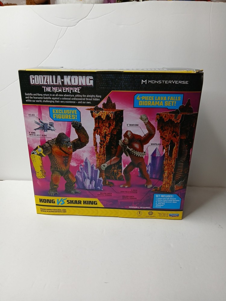 The NEW Godzilla X Kong: The New Empire Two Pack Exclusive Set features action figures of King Kong and Skar King, representing the iconic monsters from the Godzilla universe. Made of durable plastic material, these multicolor figures weigh 1.9lbs and are perfect for collectors of all ages. The set is part of the Godzilla theme and is designed for ages 4 and above, making it a must-have for fans of monsters and action figures. This exclusive set is sure to bring hours of imaginative play and entertainment to fans of the Godzilla series. The box corner has slight damage Please see all photos as this is part of description and wear