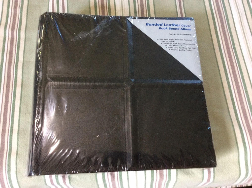 NEW HARDCOVER BLACK BONDED LEATHER SCRAPBOOK 200 4 X 6 PHOTO SLOTS PICTURE ALBUM. Condition is New....