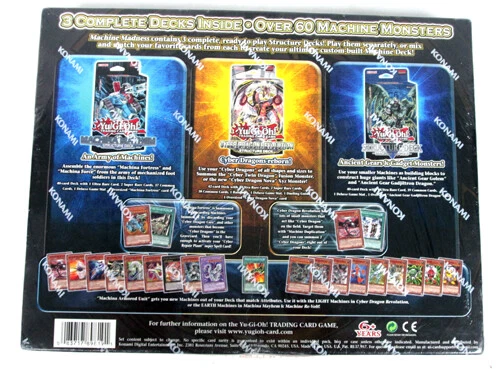 WITH OVER 24,000 POSITIVE FEEDBACK BID WITH CONFIDENCE! NEW Sealed Yu-Gi-Oh! Shonen Jump MACHINE MADNESS Value Box Trading Card Decks For sale is a NEW Sealed Yu-Gi-Oh! Shonen Jump MACHINE MADNESS Value Box Trading Card Decks We are not professional graders, please make your own condition assessment from the pictures shown. Outer box has some marks, and indented in the center, sealed in the original package. All pictures are of actual item(s). All items as shown in pictures are included in the purchase. Be sure to add us to your favorites list ! SHIPPING INFORMATION: Standard USPS Shipping, FedEx Home and Ground Delivery Method Calculated INTERNATIONAL SHIPPING: We ship worldwide. Buyers are responsible for customs fees or related fees. Delivery times may very for International shipping 6-10 business days for Priority Mail and 4-5 business days for Express International Mail. PAYMENT: Shipped Items: Tax: IL residents must pay 7.5% sales tax. All items shipped USPS Priority includes Insurance. USPS First Class Mail items sold for over $20.00 automatically have insurance calculated into the shipping cost as a handling fee. First Class Mail Items sold for under $20.00 will not be insured during shipping unless the buyer contacts us. Items without insurance are not eligible for our return policy. We encourage all auctions to be paid within 3 days after action ends. When free shipping is offered, free shipping only applies to the lower 48 states. Local Pickup: Local pickup is available, we accept cash on pickup or payment by Ebay. Local Pickup requires an additional $3 fee, and invoice will be sent through First Class Mail for each purchase. Tax: IL residents must pay 7.5% sales tax. Please know local pickup items must be paid within 3 days. Transactions will be cancelled after 7 days of non-payment. Local pickup items that have been paid for must be picked up within 7 days of auction ending. Any item picked up after 7 days of the auction ending will be subject to a storage fee based on size. Any item not picked up within 14 days of the auction ending will be forfeited without a refund. RETURN POLICY: Trader Jon's does not accept returns for non-defective items. You must return an item in the same condition as it was received, not used or altered in any way. If your item is defective or not as described please contact us so we can resolve your issue. If item is returned opened or in not new condition more then 20% restocking fee may apply. Trader Jons in Round Lake Beach Local Pickup Hours: Please e-mail us through eBay to make an appointment. Be sure to add us to your favorites list ! Note: Trader Jon's is closed Mondays, therefore next day shipping paid for on Sundays will not go out until the following Tuesday.