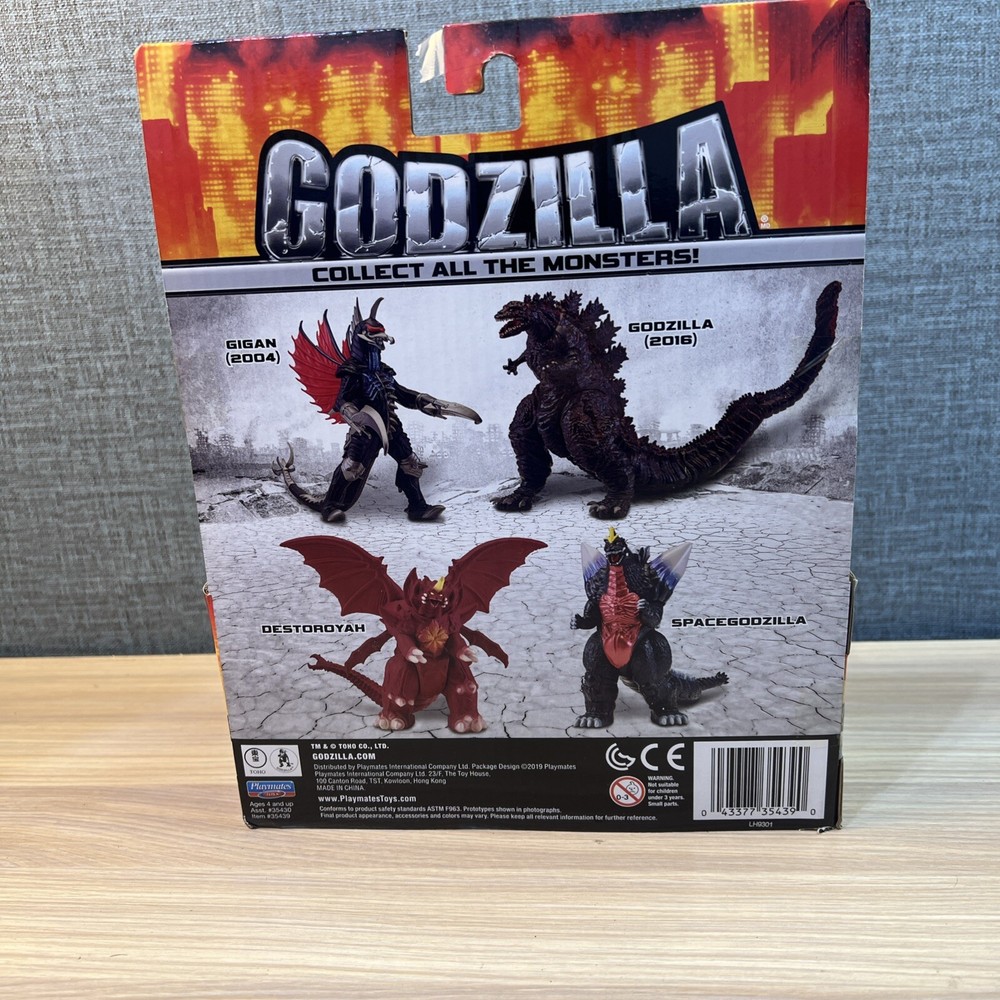 The NEW Space Godzilla Classic Kaiju Movie Monster Playmates Figure is a 7" toy released in 2019, featuring the iconic Godzilla brand. This figure is designed for children aged 3 years and up, with various age levels catered to. Made in China, this unmodified product captures the essence of the Godzilla theme, allowing fans to bring home a piece of the legendary monster for play or display.