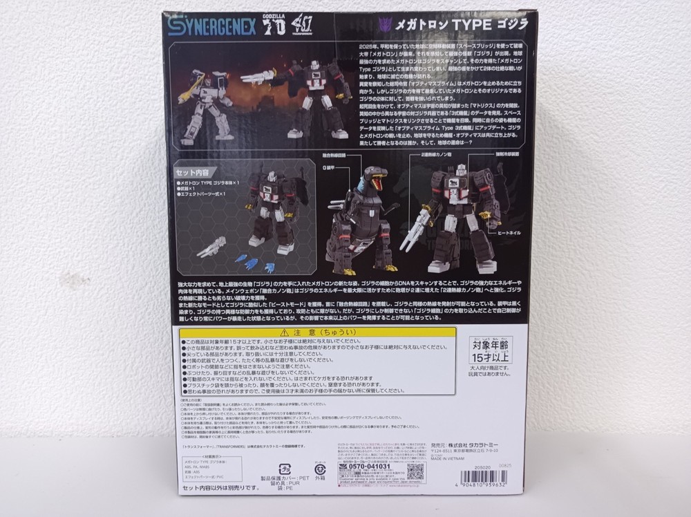 Thank you for visiting my store I sale a lot of Japanese items. Please check my store listings as well!! I use machine translation,so there is some mistakes. If you can not understand,please feel free to ask me. Enjoy shopping !! Description Condition : New. Brand : Takara Tomy Release Date:2025/05/31 Size:Height about 210mm Set Contents: ・Megatron TYPE Godzilla body (1) ・Weapon (1) ・Effect parts set (1) ・Instruction manual (1) Target Age:15 and up A dream collaboration between Godzilla and Transformers! The leader of the Decepticons, the Emperor of Destruction, Megatron, appears in a powered-up form powered by Godzilla! In search of great power, Megatron has acquired the power of Godzilla, the strongest creature on earth. By scanning the DNA from Godzilla's cells, a powered-up form that reproduces Godzilla's powerful energy and physical body is reproduced. With a premium finish specification with special markings and paint patterns, it can be transformed into beast mode with a coloring inspired by Godzilla. The whole body has movable parts, allowing for dynamic posing in both robot mode and beast mode. In addition, effect parts molded from clear resin are included. By attaching them to the mouth of the beast mode, Godzilla's heat ray can be reproduced. Shipping Policy We ship the item(s) by FedEx or DHL or Japan Post with Tracking Number & Insurance. If you have a shipping company preference, please let us know at the time of purchase. Depending on the region or Items, we may not be able to ship, and additional shipping fees and additional delivery days may apply. In that case, we will contact you by message. Please Note Import duties, taxes and charges are not included in the item price or shipping charges. These charges are the buyer?s responsibility. Please check with your country?s customs office to determine what these additional costs will be prior to bidding/buying. These charges are normally collected by the delivering freight (shipping) company or when you pick the item up - do not confuse them for additional shipping charges. We do not mark merchandise values below value or mark items as ?gifts? - US and International government regulations prohibit such behavior. If you have a question, please be sure to ask me before you purchase ! Happy bidding!
