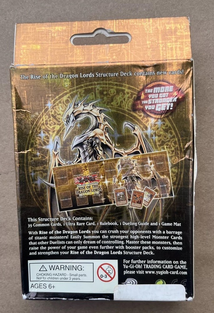 This listing is for a New Vintage 1996 YUGIOH Trading Card Game Structured Deck Rise of the Dragon Lords English Edition. The set is NEW, but the box has some damage from storage. Please see all photos for condition and feel free to ask any questions. ***Sales tax of 7.75% is added to all California transactions. Please be aware that some other states have recently required that sales tax is collected. This is automatically added to your transaction by eBay and they send it directly to your state government. We, the seller, have no control over this portion of the invoice. Thank you for understanding.***