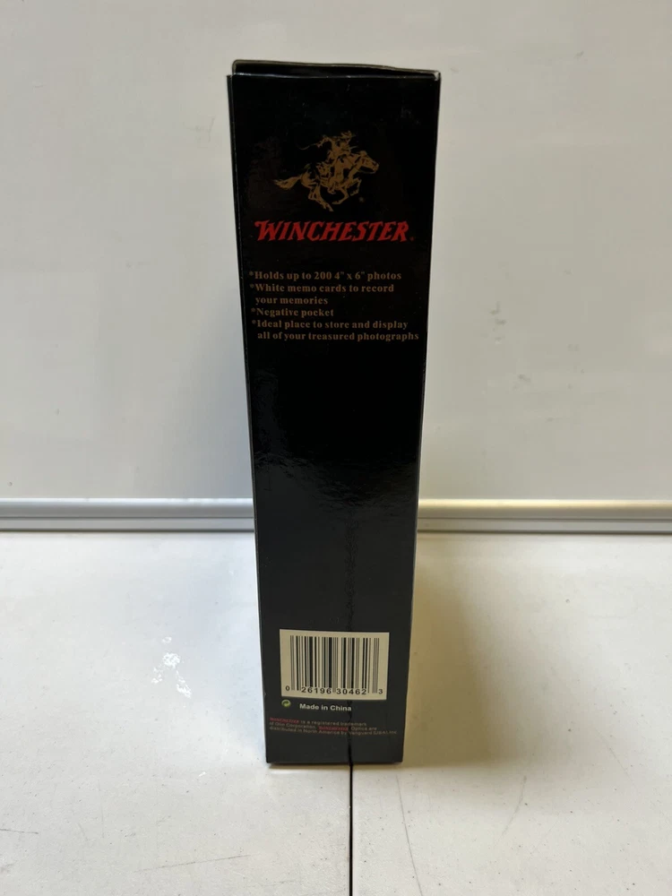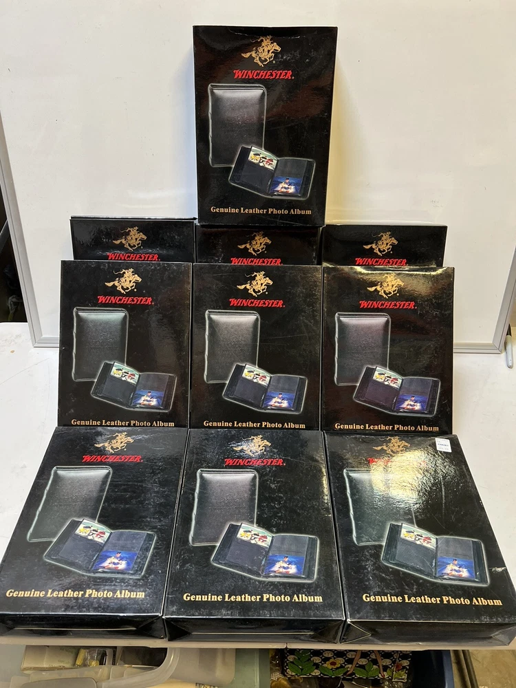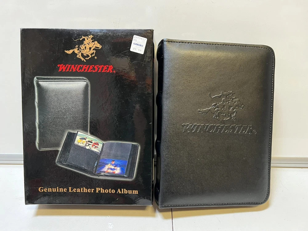 @ NIB NEW Winchester Hunting Fishing Photo Album 4x6" Black Genuine Leather. Brand new in box. Has not been used. Tote photo albums. Black shelf against wall. Verified...