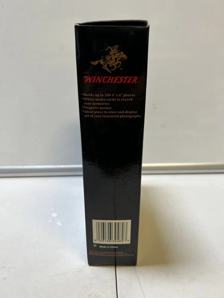 @ NIB NEW Winchester Hunting Fishing Photo Album 4x6" Black Genuine Leather. Brand new in box. Has not been used. Tote photo albums. Black shelf against wall. Verified