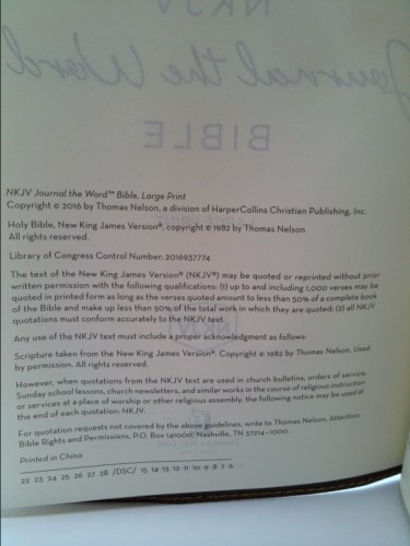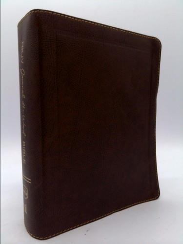 NKJV, Journal the Word Bible, Large Print, Bonded Leather, Brown, Red Letter Edition: Reflect, Journal, or Create Art Next to Your Favorite Verses by Thomas Nelson Bonded leather bound, large print text. Wear and creasing to covers is consistent with age and use. Binding is tight and secure. All pages are intact and free of all marks or highlights. Book is wrapped in a poly bag for further preservation. Secure packaging for safe delivery.