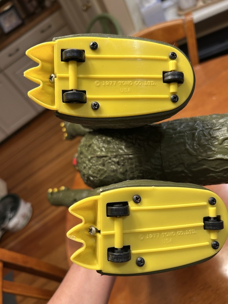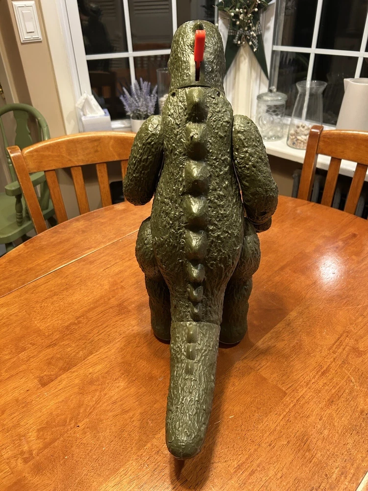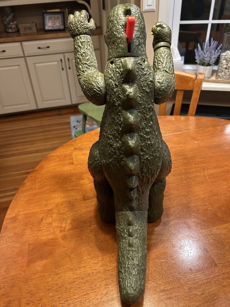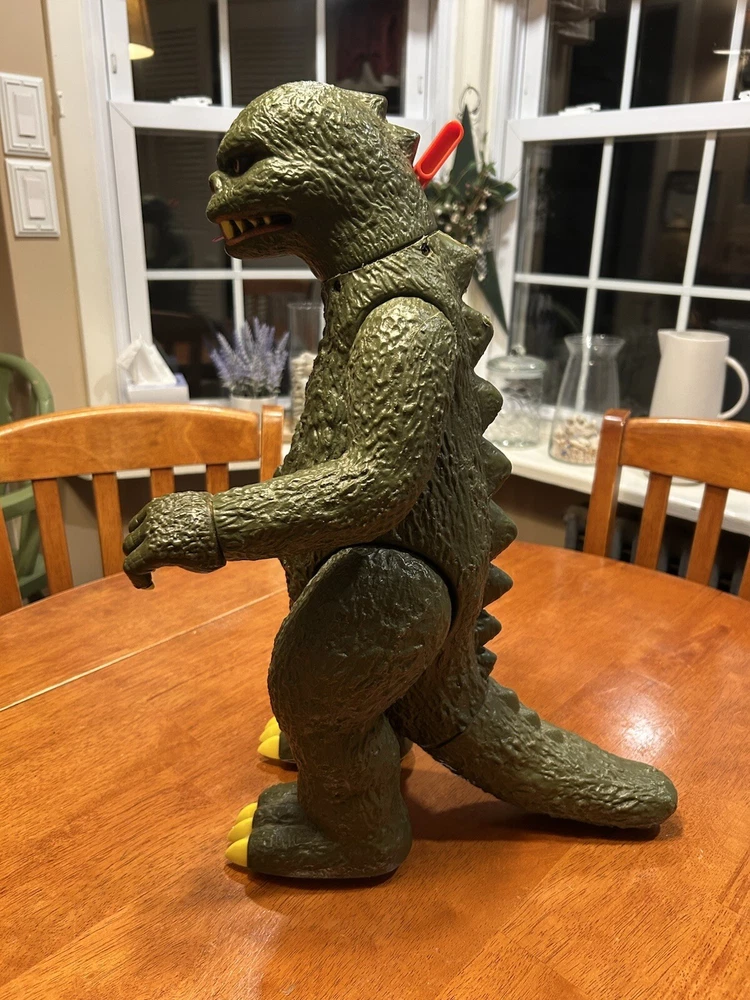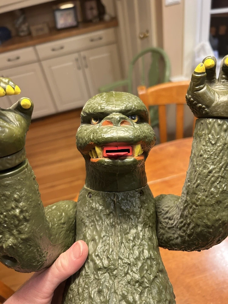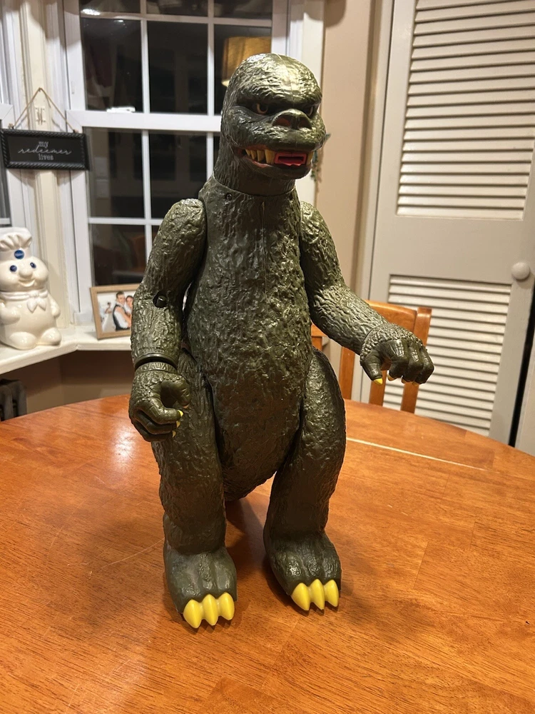 The Vintage 1977 Toho Shogun Warriors 19" Godzilla with Fist & Tongue is a rare and collectible toy from Mattel. This classic Godzilla figure is themed after the iconic monster and is sure to appeal to fans of vintage toys and Godzilla enthusiasts. With its unique design and working features, this toy is a must-have for collectors looking to add a piece of nostalgia to their collection.