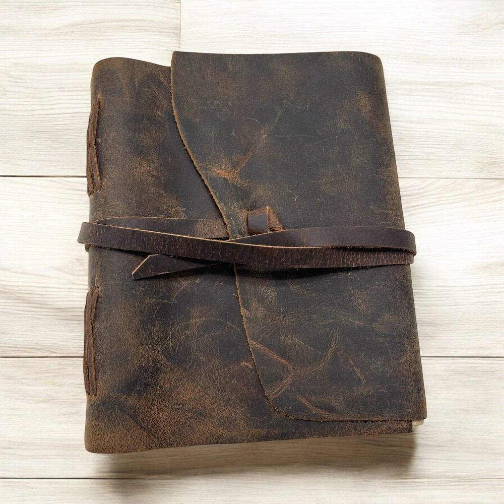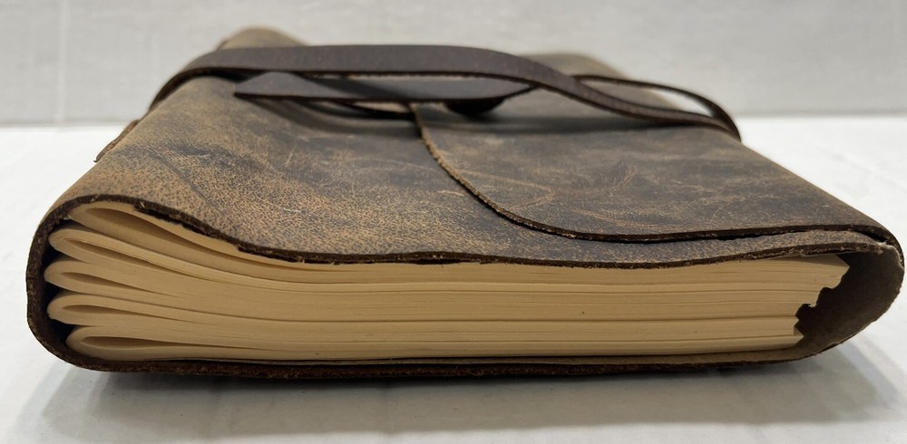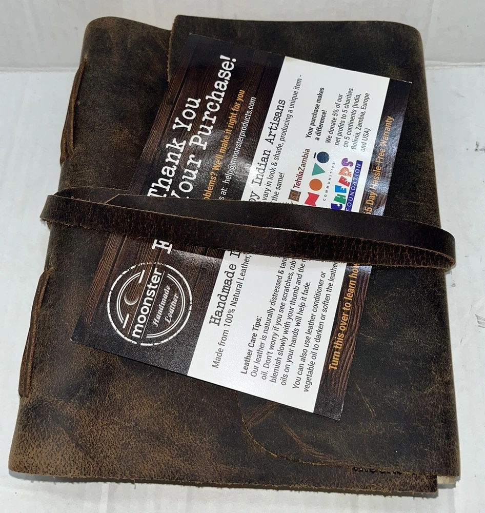 This Moonster handmade leather-bound journal book is perfect for those who value high-quality materials and unique design. The journal is lined and ready for use, making it an ideal choice for those who want to get right to writing. The cover is made of soft and durable leather, ensuring that the journal will last for years to come. The brand, Moonster, is known for its high-quality handmade products. This unit type journal is perfect for those who want a reliable and stylish option for recording their thoughts and ideas. This product is perfect for those who appreciate the finer things in life and want to make a statement with their choices. Please let me know if you have any questions! Approx Measurements: Width: 7" Length:8"