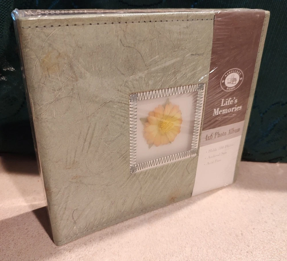 Preserve your precious memories with the Nantucket Home Life's Memories 100 Photo 4 x 6 Album in a lovely greenish hue adorned with yellow florals. This slip-in photo album is perfect for storing your family photos and keeping them organized for easy access. The book bound format ensures that your photos are secure and won't fall out. This album is archival safe and acid free album. The album has a maximum photo size of 4 x 6 inches and can hold up to 100 photos. It is made of faux leather material and comes in a multicolor design. This album is a great way to showcase your cherished memories and make them last a lifetime.